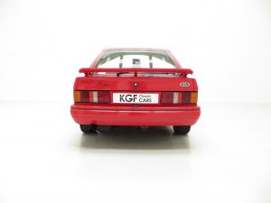 Registered new on the 1st August 1989 by supplying Ford Main Dealer, W.H. Perrys of Essex, the first owner was a Mr David Smith. A new car order form in the history file made out to Mr Smith confirms the price paid of £10,430.81 including factory specified options. Incredibly, Mr Smith owed the car for almost 27 years, only selling in 2016 to the second ever keeper, Mr Craig O’Neill. It is extremely obvious that both enthusiasts have cherished this performance Ford as witnessed by a complete and eye watering colossal history file comprising of countless genuine Ford invoices and specialist thereafter, including the most recent by renowned experts, Harvey Gibbs of Supreme Car Services in May 2019. This invoice for £1,577.35 includes works carried out of full service, cambelt, tensioner and water pump, gearbox rebuild and metering unit calibration as well as a full inspection. Furthermore, the original Perrys document wallet houses all handbooks, guides and dealership literature as well as the service book with 15 stamped entries. The current mileage is 79,345 miles.