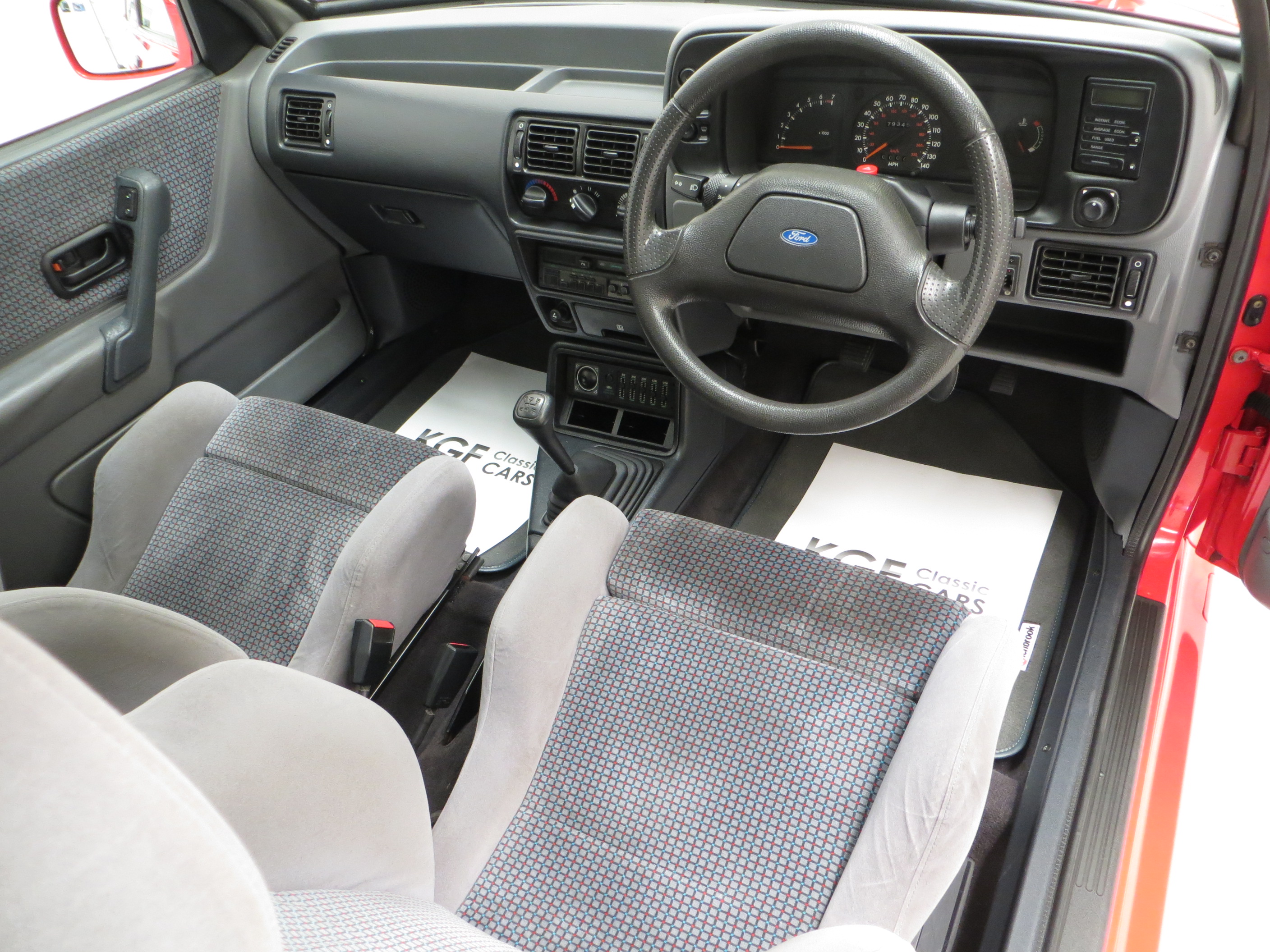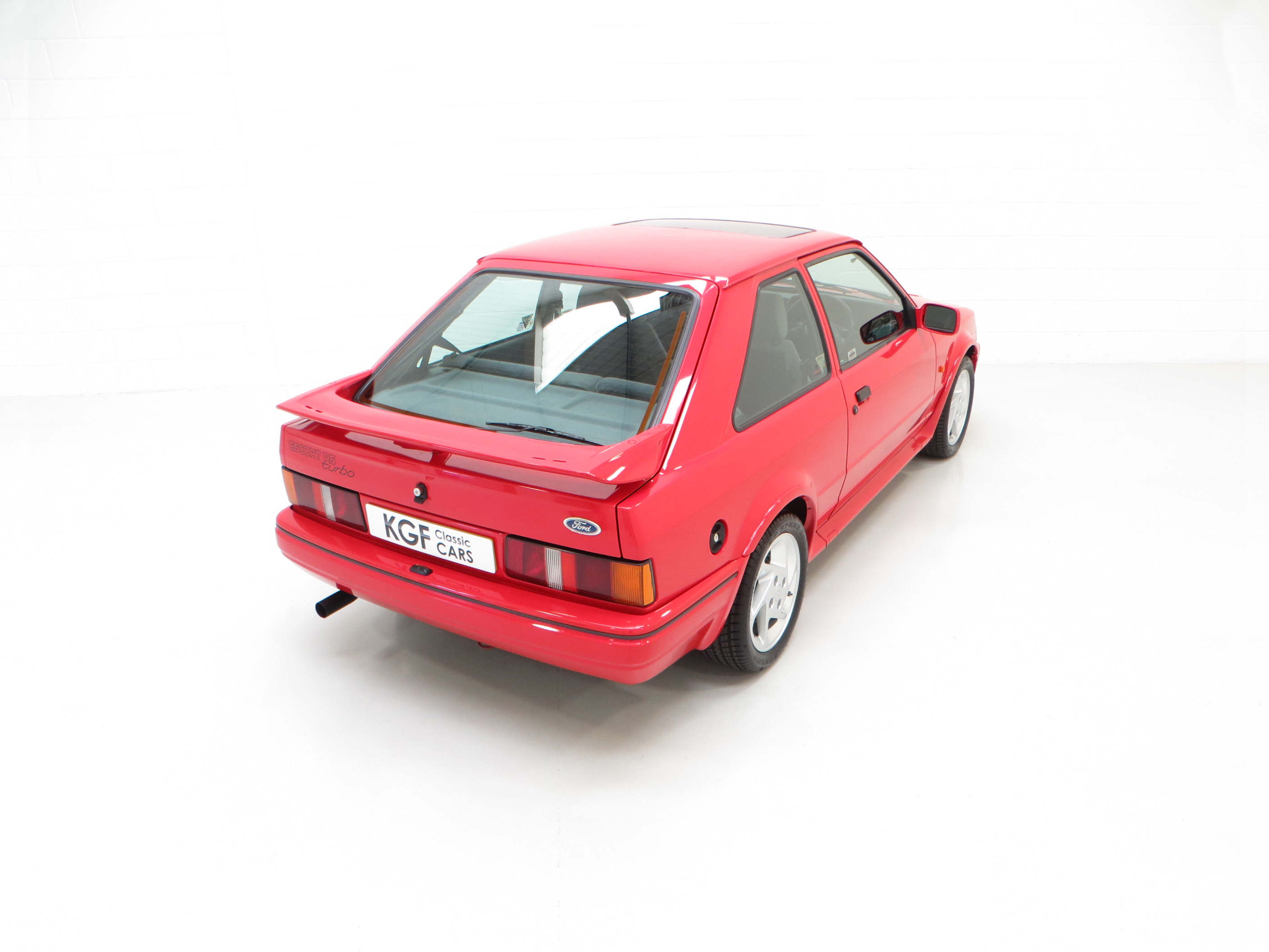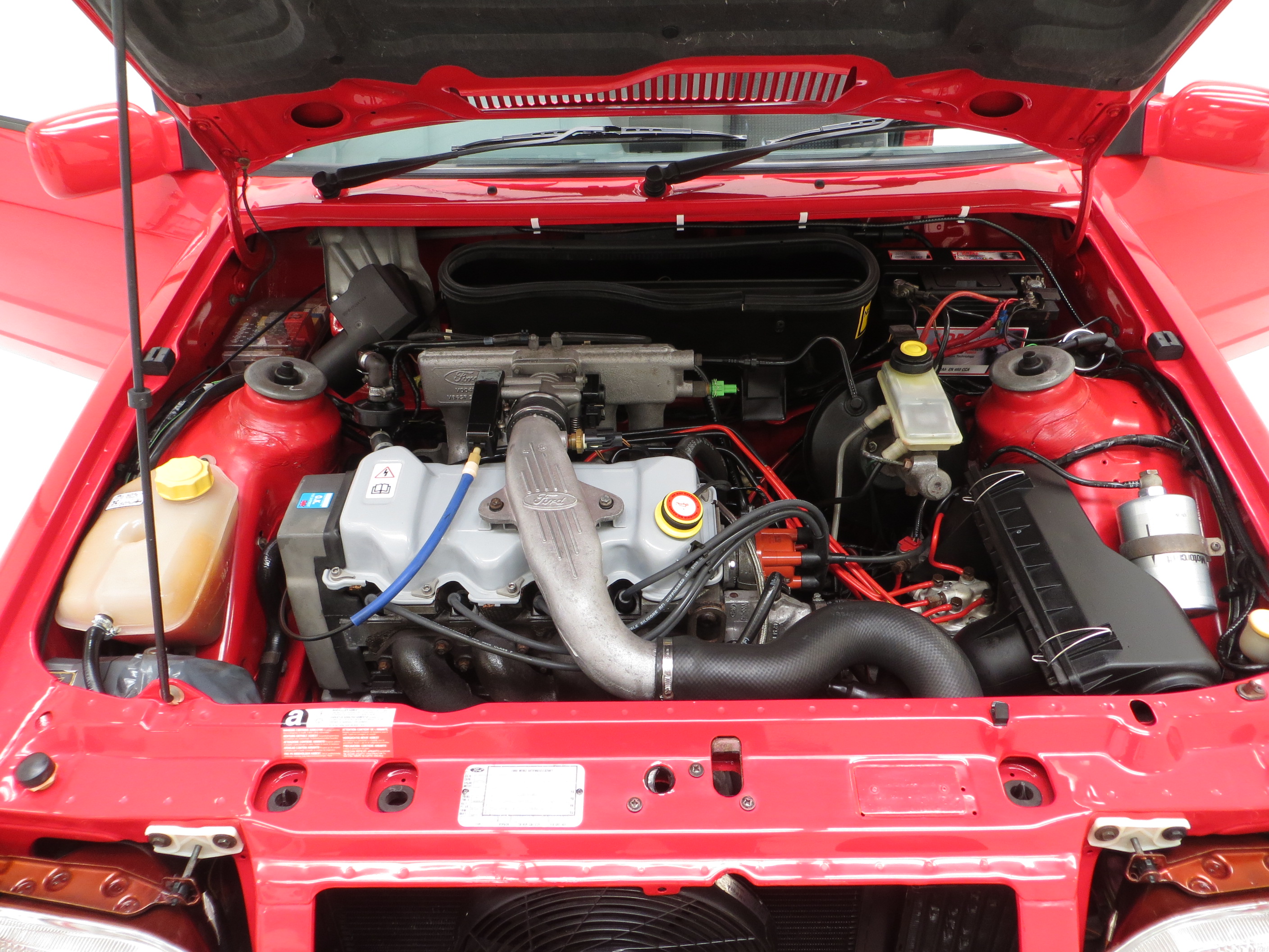 The 1.6 OHC (CVH) fuel injected engine with a Garrett AiResearch T3 turbo charger and intercooler is factory standard making this vehicle a rare example that has managed to avoid the modification era, thankfully as the car was in the custody of the first owner for an incredible 27 years! Quoted figures of 132bhp give this vehicle a 0-60 dash of 8.2 seconds and a top speed of 128mph. The engine bay is clean with factory stickers, plates and inner wing stampings. The 5-speed manual Ford BC box with standard 220mm clutch is light, precise and a joy to use having just had a complete strip and rebuild with all new bearings and seals.
