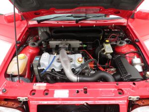 The light alloy 6X15 RS wheels have been subject to refurbishment in the correct Stardust Silver and are pristine. Premium matching Dunlop SP Sport 2000 195/50 R15 tyres are fitted all round showing plenty of tread and the spare wheel wears the original Dunlop SP Sport D40 tyre. This ‘hot hatchback’ slows as well as it goes with the ABS braking system designed in conjunction with Lucas Girling working perfectly.