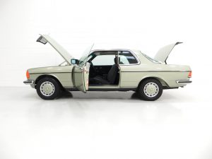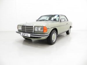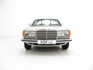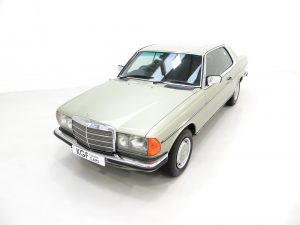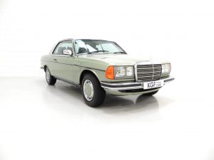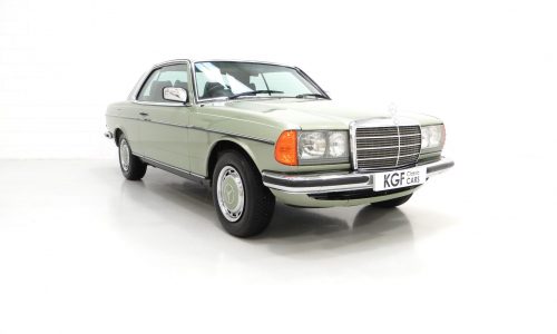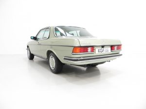 After introduction of the Coupe 123 series, known by model designation C123, in Spring 1976, this early example was registered on the 21st October 1977. The supplying Mercedes Main Dealer was Mill Garages of Sunderland, and at one year old the car was sold by Normand Mercedes-Benz of Mayfair to the second owner. Letters, business cards and invoices dated 1978 from Normand Mercedes-Benz are in the history file along with many MOT certificates dating back to the first in 1980. The mileage of 26,902 miles is fully verified and there is a large files of vehicle maintenance invoices. The Mercedes plastic wallet houses all handbooks, guides and dealership literature as well as the original service and maintenance booklet with factory build card inside. Two original Mercedes keys are present along with a sales brochure from when the car was sold new. In 2011 the car was sold by Mercedes-Benz specialist, Charles Ironside Limited, to the famous Graham Dacre collection to where it was last registered. A five-digit private registration plate has been on the car since new and will remain so for the next owner.