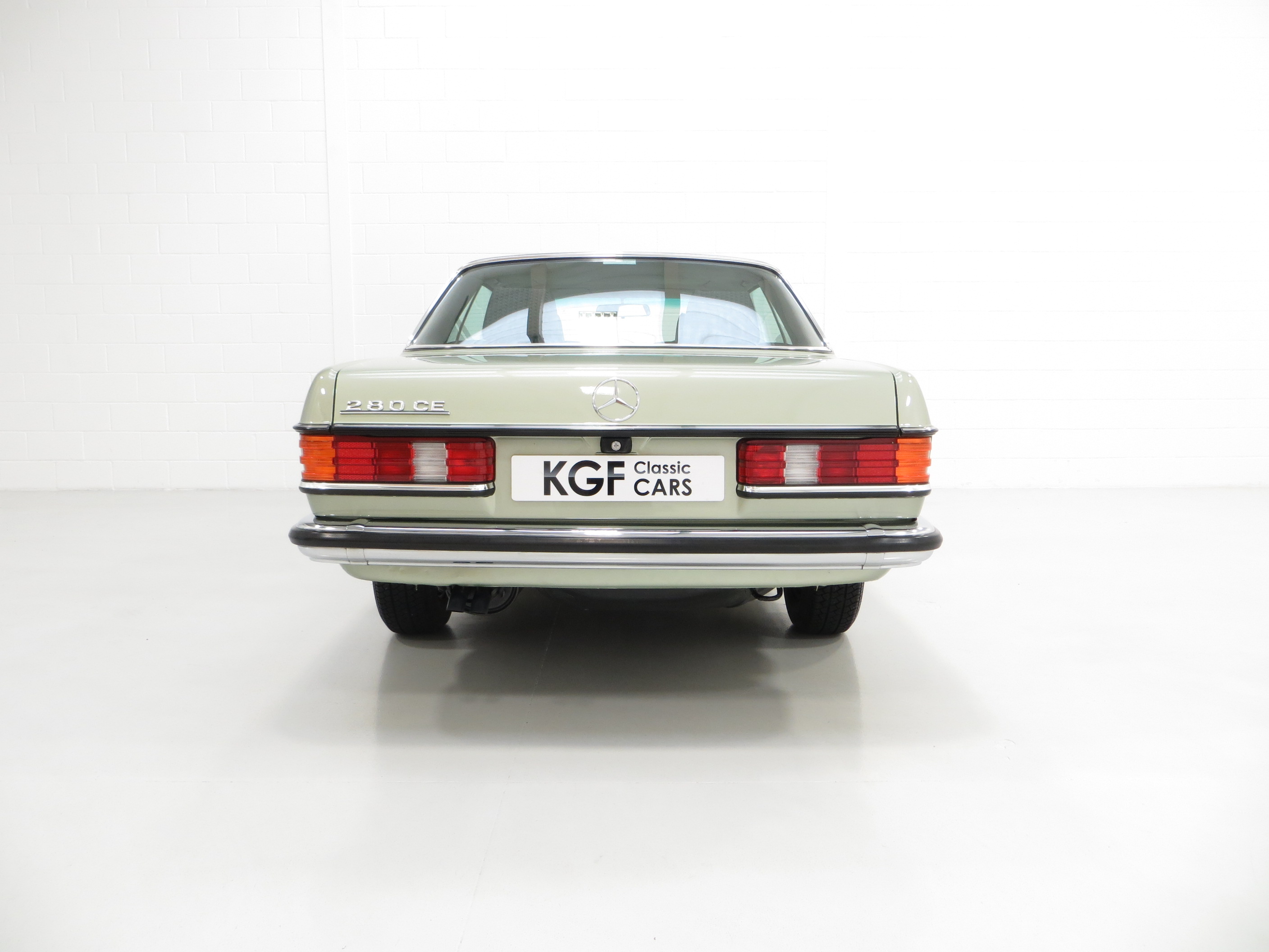 Synonymous with the pinnacle era of legendary Mercedes-Benz build quality, the craftsmanship displayed with this C123 280CE is simply breath-takingly. Finished in factory optional Silver Green Metallic, (Code 861), the beautiful paintwork is uniform throughout and boasts a stunning bright finish. All beautifully made trim sections, high quality chrome and lights are preserved and undamaged. The large heavy frameless doors close with a wonderfully assuring thud, and all factory side glass lowers to create a striking pillarless coupe. Having covered just 26,902 miles from new and part of one of the world’s most prestigious Mercedes-Benz collections, this early 280CE is of premium collector quality.