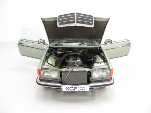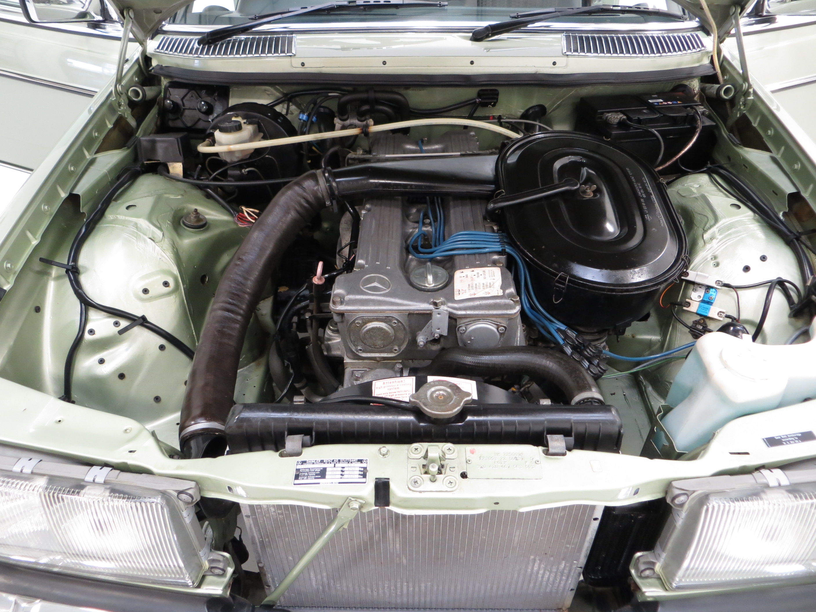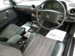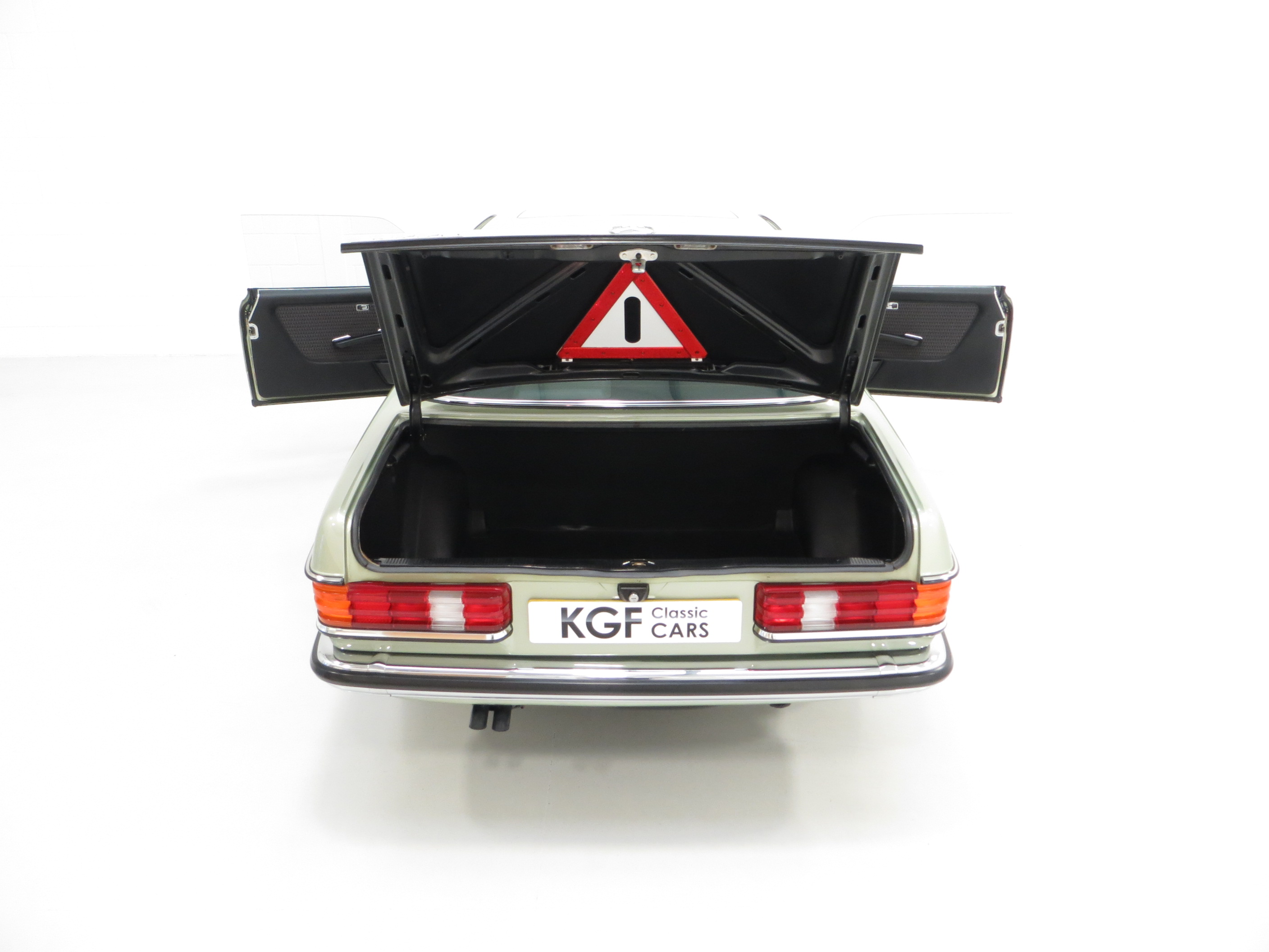 The preferred choice over the 230C is the more powerful fuel injected 280CE model presented here, fitted with a 2746cc in-line six-cylinder engine. 185bhp allows effortless cruising in serene quietness, and ample power to keep up with modern traffic. The engine bay is entirely standard with factory stickers, plates and panel stampings preserved and showing some natural aging. Even the delicate and usually perished rocker cover label is intact! The relaxed and favoured four-speed automatic transmission is flawless in operation.