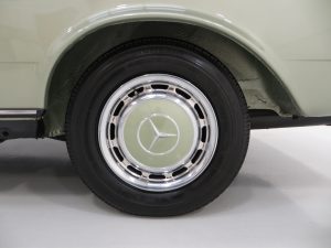 The beautiful classic colour coded 12-hole metal/chrome hubcaps are pristine and shod in period matching Michelin 195/70 R14 tyres with plenty of tread. The spare wheel remains shod in the factory Michelin XUS tyre which is stored alongside the original jack. Dual-circuit power-assisted brakes feature discs all round and perform very well.
