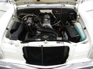The beautiful classic colour coded 12-hole metal/chrome hubcaps are pristine and shod in matching Continental 175/80 R14 tyres with plenty of tread. The spare wheel remains shod in the factory Pirelli Cinturato C3 tyre which is unused with coloured banding still visible. Dual-circuit power-assisted brakes with failure warning light feature discs all round and perform very well.