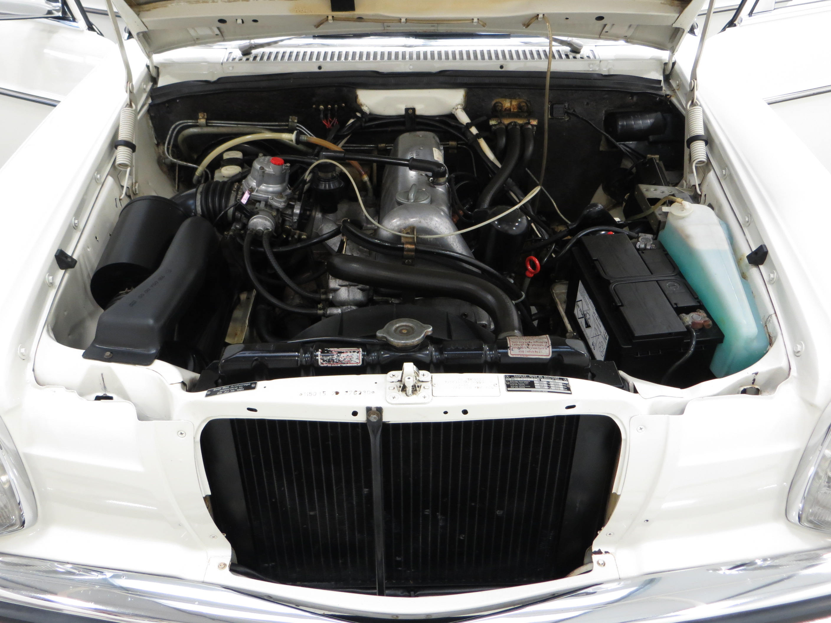 The model designation of W114 and W115 refers to the number of engine cylinders, six and four respectively, with this W115 200 example developing 95hp at 5000rpm to achieve a top speed of 99mph. The engine bay is factory standard with manufacturer stickers, plates and panel stampings well preserved. The four-speed manual transmission is light and precise yet feels solid and robust, just as you would expect from this era of Mercedes-Benz.