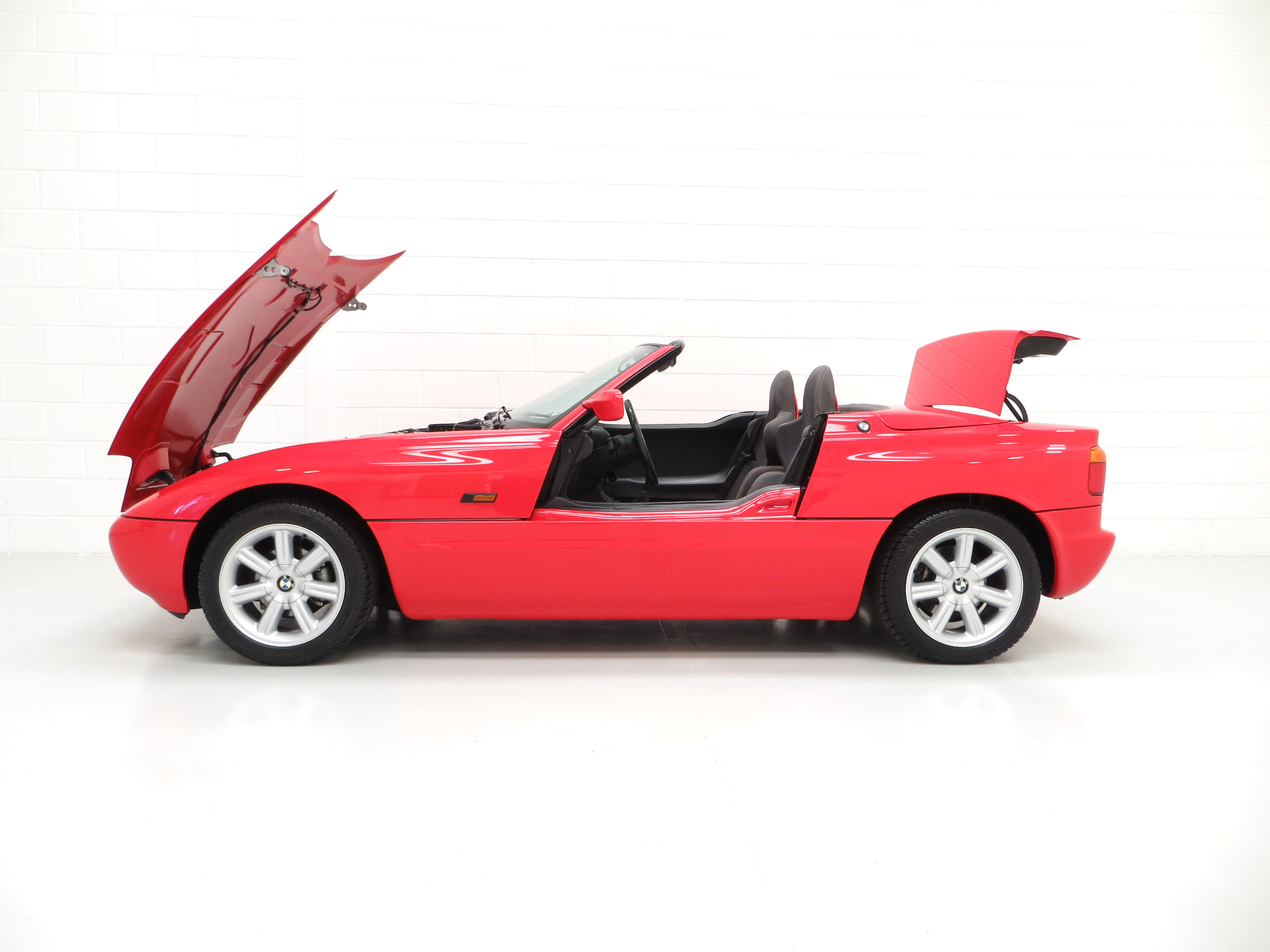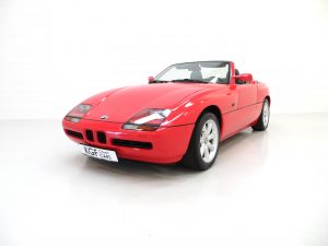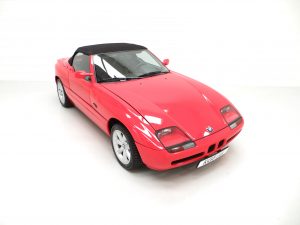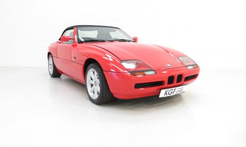 The first model in BMW’s line of Z-Series roadsters, the iconic Z1 was build in limited numbers of just 8,000. All left-hand drive, the majority of cars (6,443) were sold to the home German market with Italy taking the second largest number of cars, making this UK supplied example exceptionally rare. Z stands for Zukunft, or ‘Future’ translated from German and aerodynamics played a huge part in the cars design, with a fully flat under-tray and rear diffuser. Other unique features were the electrically operated vertical sliding doors and bodywork made from various composite resin panels, to which BMW insisted could be fully changed in 40 minutes by a competent Technician, even to the point where they recommended buyers purchased a second set of panels in order to change the colour at a quim!