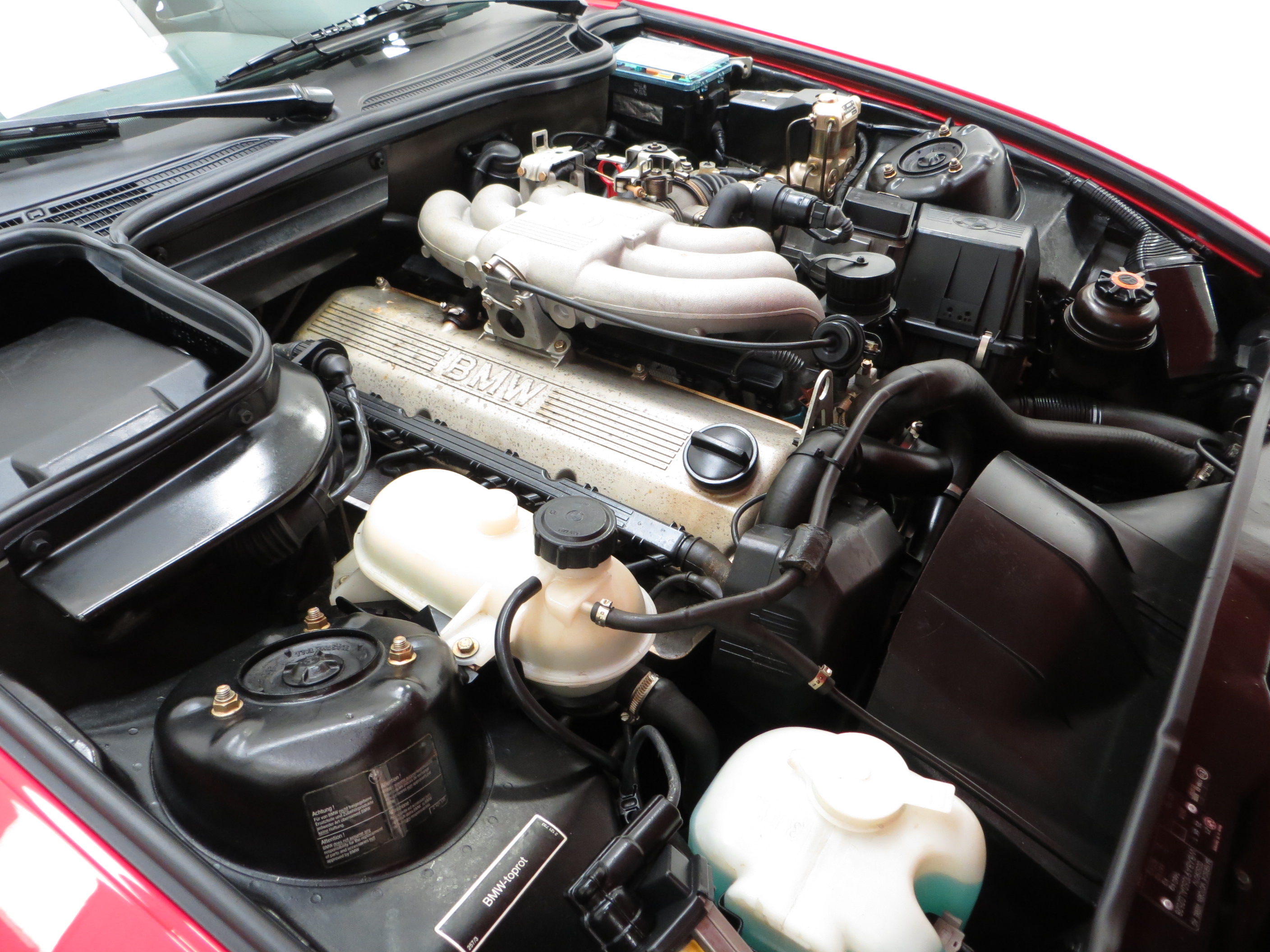 Sourced from the E30 325i is BMW’s legendary and time proven inline six-cylinder engine displacing 2494cc. A power output of 170bhp and 222Nm torque in a car weighing just 1250kg is enough to achieve 0-62mph in 7.9 seconds and a top speed of 140mph. The spotless and unmolested engine bay displays factory plates and stickers and the composite bonnet wears the correct underside pressings and crackle finish. The five speed manual short throw gearbox is light and precise. Engine in front mid-ship arrangement with rear wheel drive achieves a near perfect 49:51 front to rear weight distribution. The ultimate Z driving machine.
