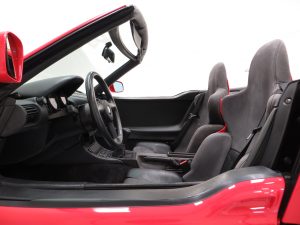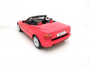 The most striking colour in factory original Top Red, (Top Rot – Code 257), is everything you would except from a 19,751 miles example that has formed part of one of the UKs most renowned collections. Unrepeatable in condition, originality and credentials, the paintwork is near flawless and all composite panels, plastics and trim are preserved. One minuscule treated scratch will be forgiven by even the strictest scrutineer. The hood is factory fitted and as new with only a slight crease to the plastic rear screen. BMW dealer number plates are fitted and there are even stickers still attached to the original exhaust! The quirky electrically operated vertical sliding doors function seamlessly with the toothed rubber belts working as they should. Idolised by BMW enthusiasts, this Z1 is without question one of the best in existence.