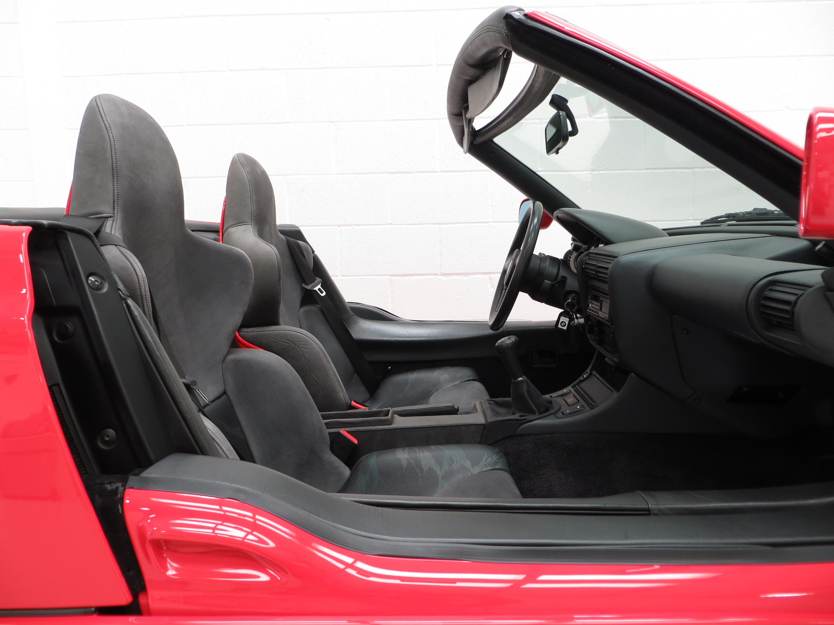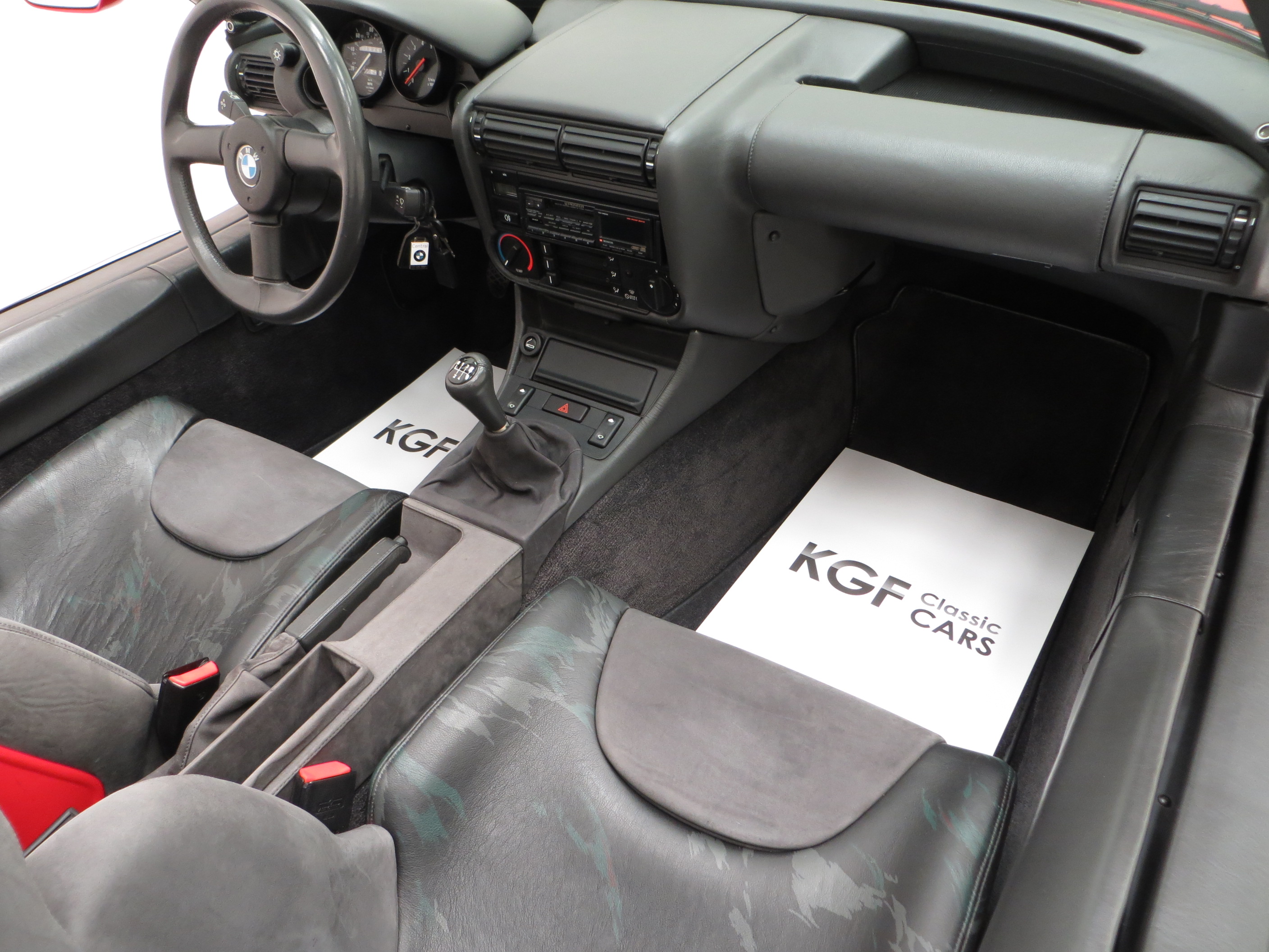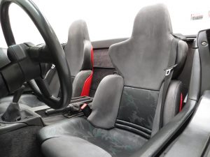 The special BMW sports seats feature integral headrests and are trimmed in the original Dark Grey Nubuk Leather, (Grau/Dunkelgrau – Code 0300), which are spotless and totally free from degradation. The pristine dashboard trimmed in Grey Cowhide hosts fully functioning and as new switches, controls and gauges and the unique three spoke steering wheel is perfect. The side panel trim is fully intact with only light scratches inflicted upon clambering in and out of the cockpit. Dealer supplied and near impossible to replace carpet mats remain with the car. Many cars were ordered new with upgraded stereo systems and the Pioneer 3090 unit as specified on the new car invoice in the history file remains fitted. This Z1 interior is exactly as it sat in the UK main dealer showroom in 1990.