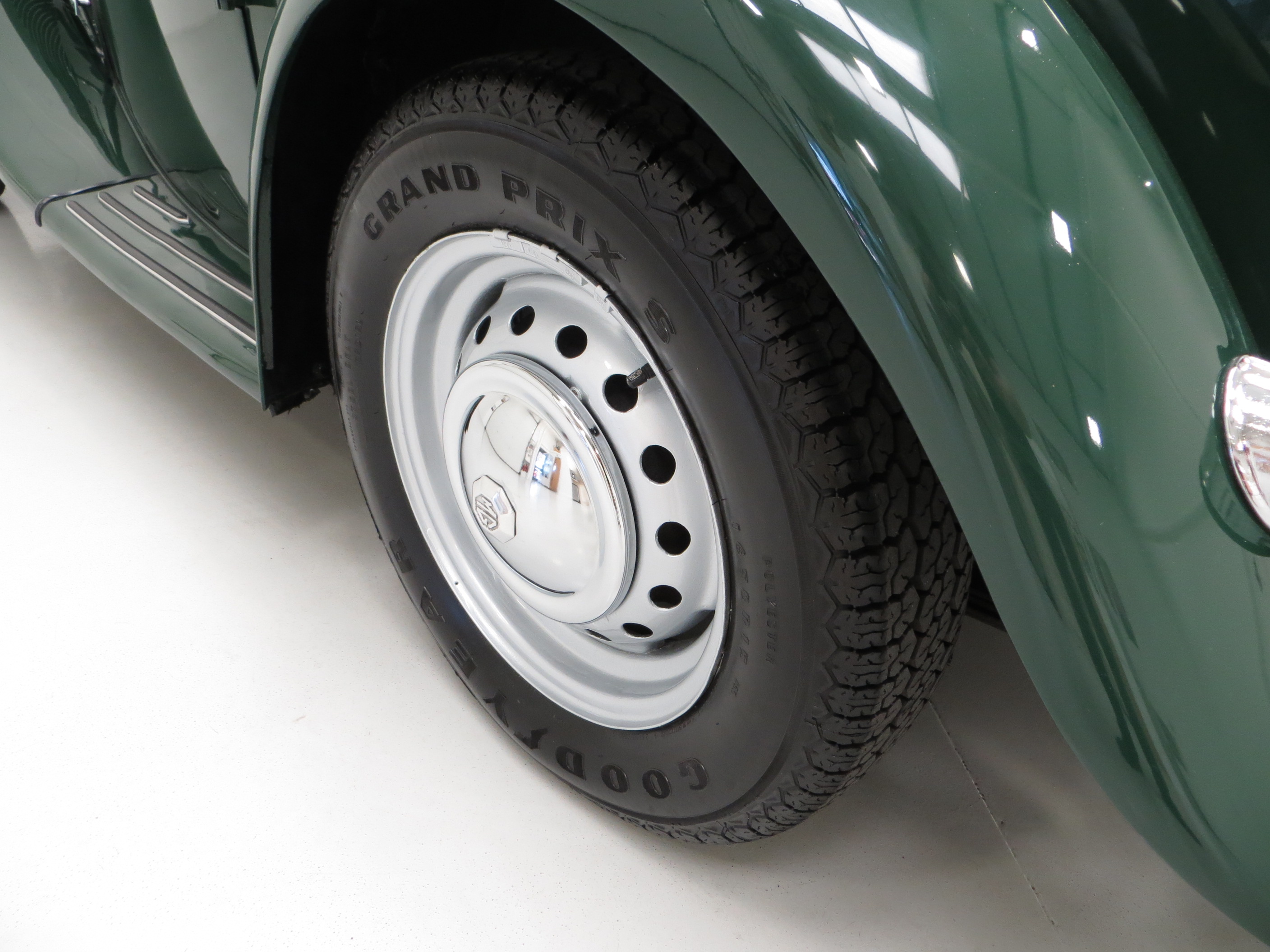 Attractive and standard steel disc wheels are covered by immaculate chrome MG hubcaps and shod in premium Goodyear Grand Prix S tyres with excellent tread to all four corners as well the matching spare. A Lockheed hydraulic braking system employing 9in diameter drums stop the car safely.