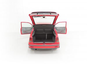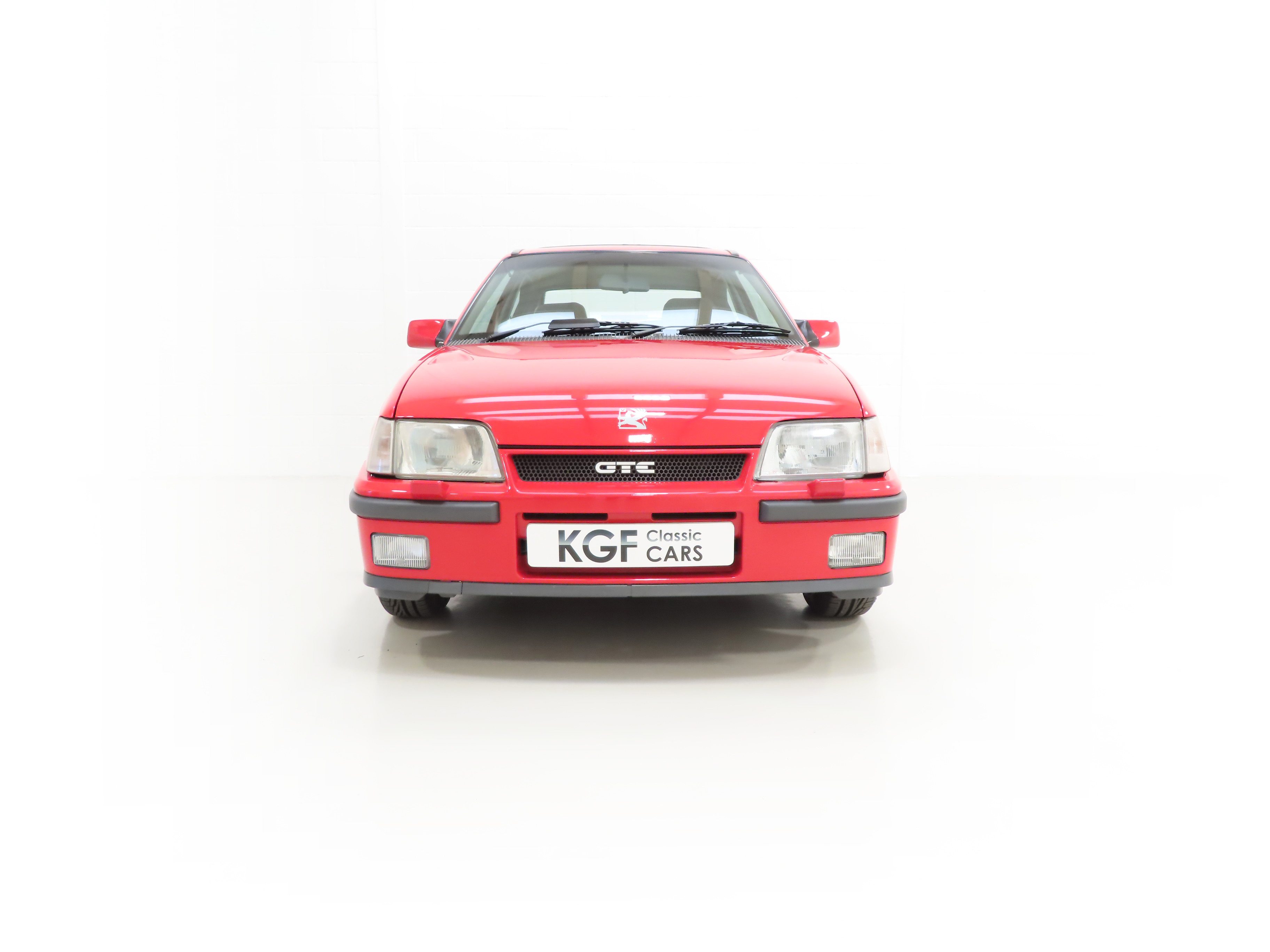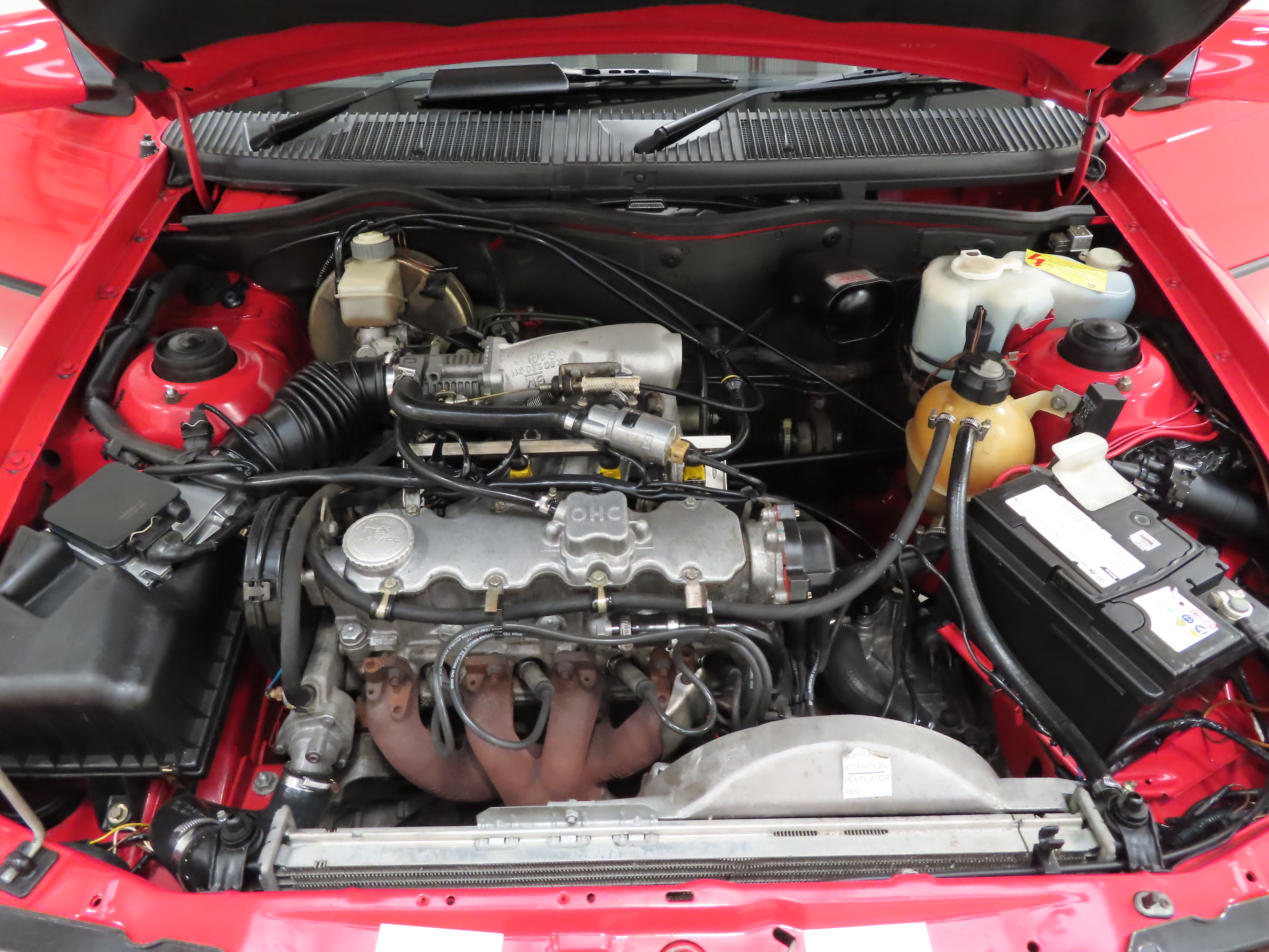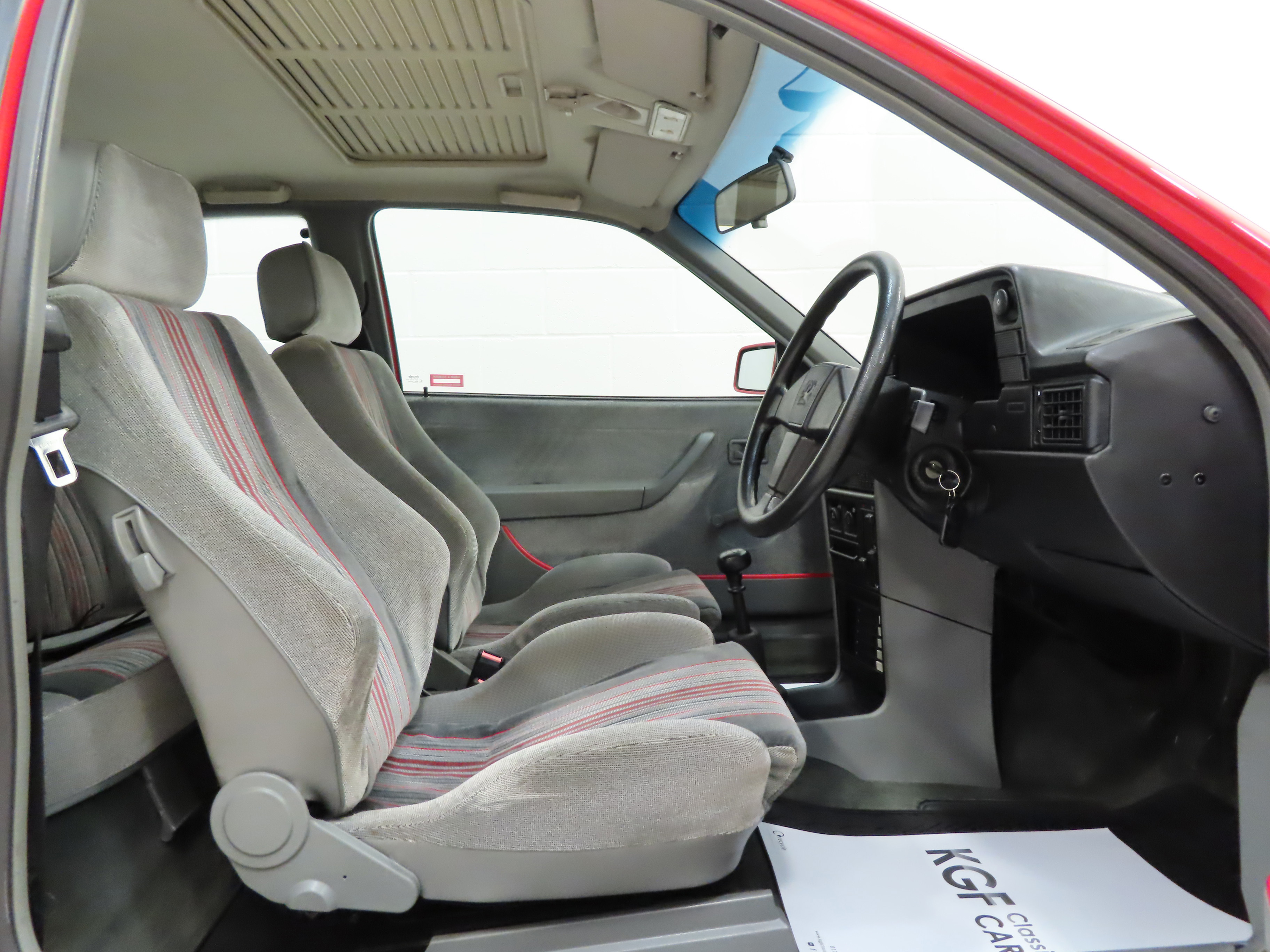 This absolutely standard Astra 2.0 GTE is finished in Vauxhall Crimson Red, (Code 76L), which boasts a brilliant bright shine all over with none of the usual fading issues. Garaged from new, this rare survivor has been cared for by just one owner and avoided the fate of the vast majority making this a very unique example. There are some small frontal stone chips that have been carefully touched in. The factory fit labelled glass is etched with the vehicle registration and the supplying Vauxhall main dealer number plates and rear screen sticker, Shaw & Kilburn, remain attached. The original GTE decals and badges are fully intact but there is some lifting to the matt black B-pillar wrap on the nearside. Virtually impossible to find such a straight, genuine and preserved example especially with one genuine owner!