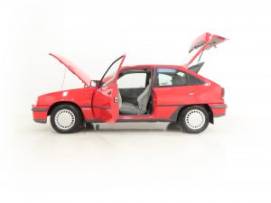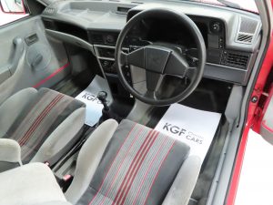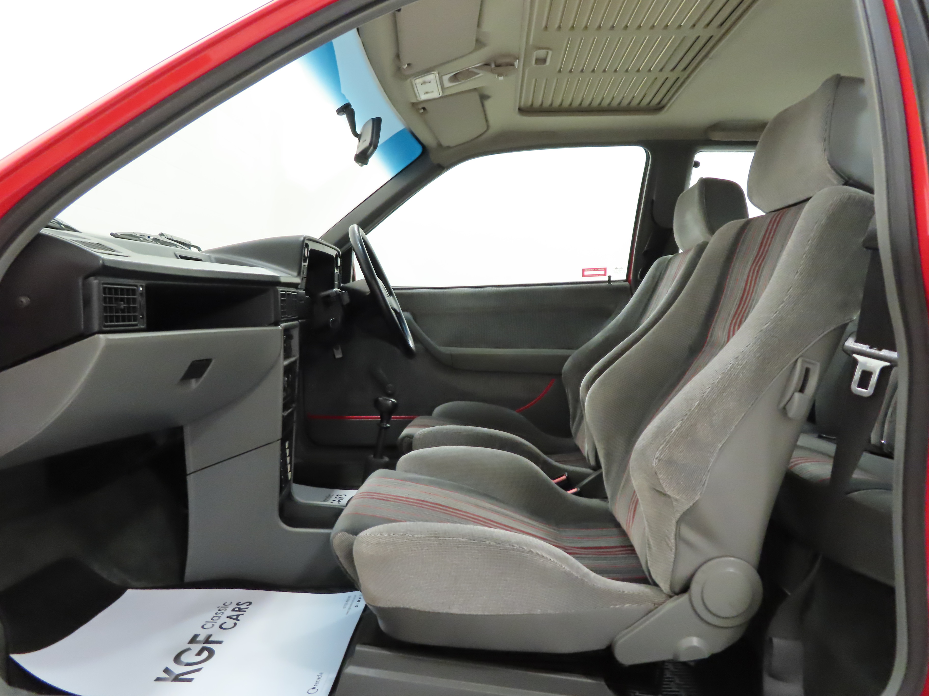 The 1998cc eight valve four-cylinder SOHC engine is renowned for its lively nature and robust reliability. Producing 124bhp and maximum torque output of 125 lb.ft, the 8V was a truly strong contender in the ultra-competitive 1980’s hot hatch era. This factory standard example performs impeccably and produces an exciting rasp still fitted with the genuine Vauxhall exhaust system! A top speed of 128mph is achieved whilst 0-62 is dealt with in an impressive 8.7 seconds. The engine bay is beautifully presented with factory plates and labels intact. The 5-speed manual gearbox with final drive ratio of 3:55:1 feels positively tight and allows spirited progression up the range.