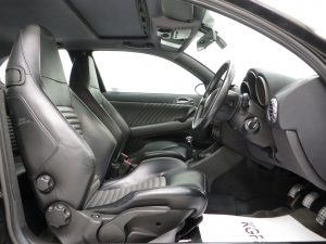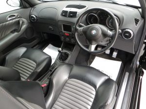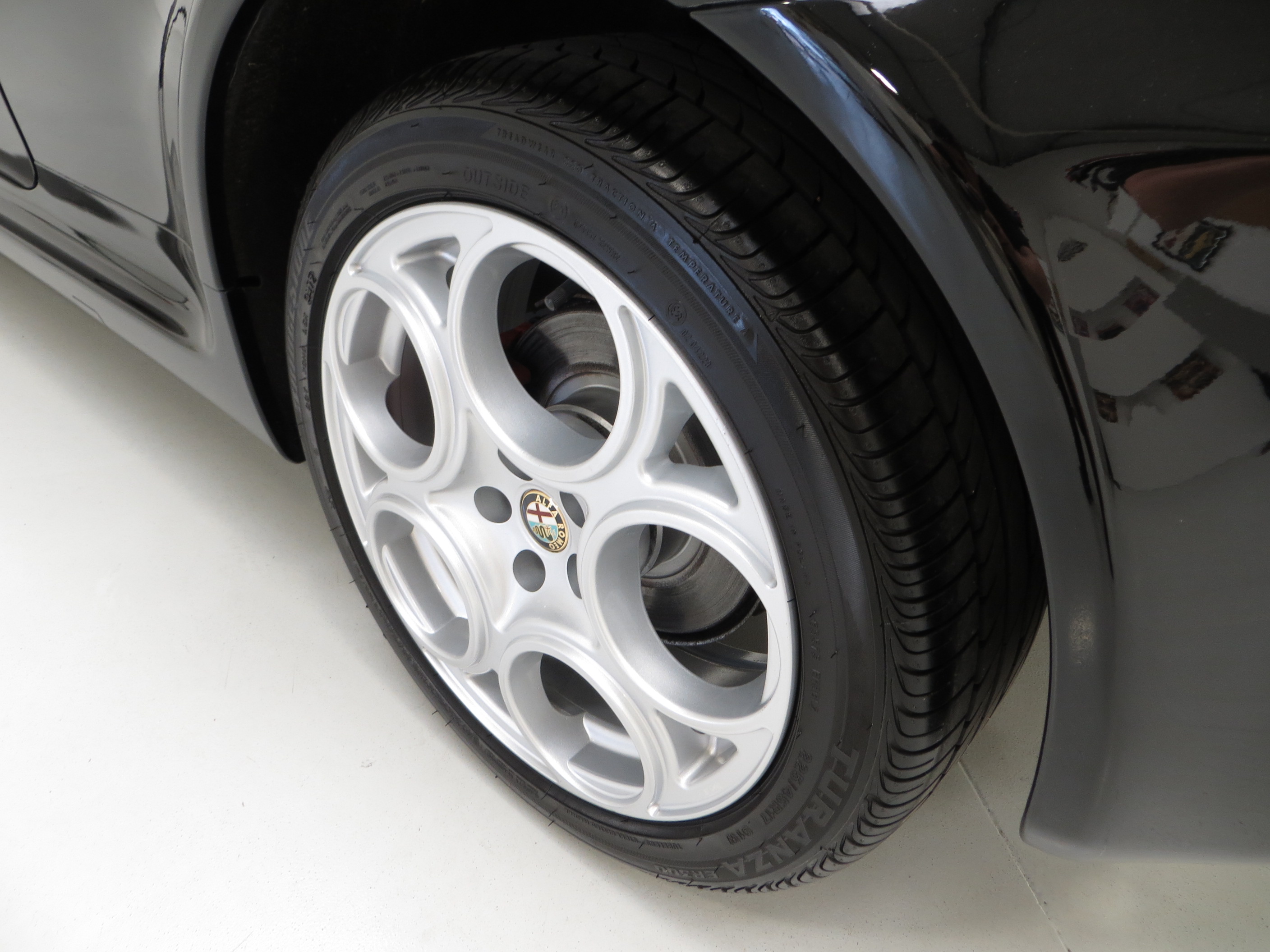 Factory optional leather sports seats in Black and Stone Grey offer immense support and are preserved in superb order. The huge protruding bolsters retain correct shape to harness the occupants and there is only very light wear to the driver’s seat outer bolster. The matching door cards and flocked style coverings to the lower dashboard and doors are immaculate. Light scratches are visible to the inner door handles. All equipment and controls are fully operational, including the climate control, cruise control, navigation and heated front seats. Factory stickers remain in the door apertures, and the leather bound three spoke steering wheel and gear knob are virtually perfect. The boot area is pristine with the chrome paint code sticker, and factory Fix and Go compressor, tyre sealant and toolkit both in the stylish leather wallets which closer resemble screen designer handbags and cement the notion that Alfa Romeo can make even the most mundane items look stylish!
