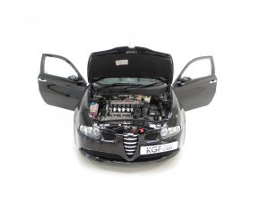 The flagship 147, this GTA features the ferocious 3.2 litre V6 24 valve engine with factory optional and preferred Q2 Torsen gripper-type differential. Formidable performance and exceptional handling, this car achieves a top speed of 153mph and 0-62mph is despatched in just 6.3 seconds! The engine bay is nothing short of a work of art with six prominent chrome inlet manifold pipes and red lettering as well as all factory stickers, plates and strut top chassis stamp. Even the unbonnet stickers remain intact. The slick 6-speed manual short-throw gearbox is perfectly matched to this powerful and poised driving machine.