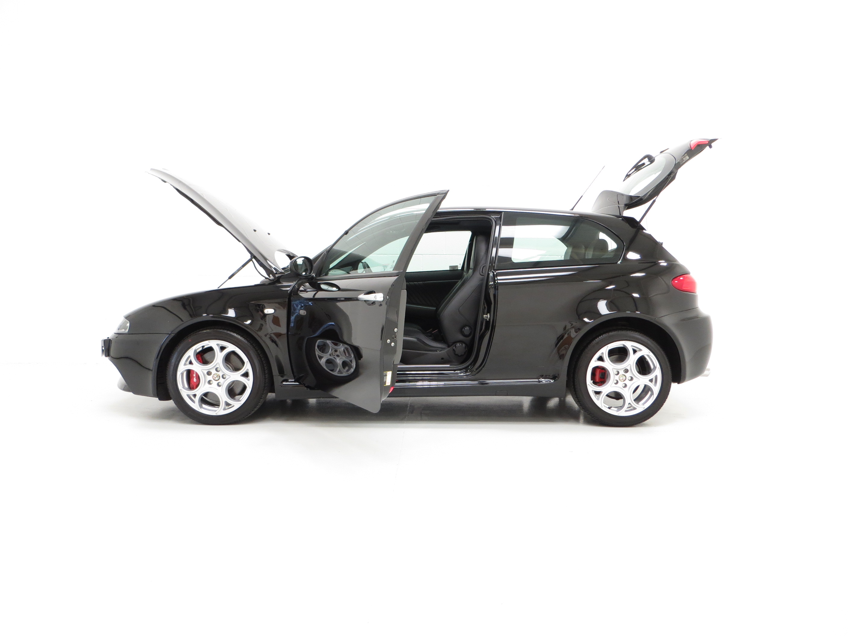 This gorgeous Alfa Romeo 147 GTA is the flagship model in the 147 Range and uses the GTA badge dating back to 1965 when the Giulia Sprint GTA collected a string of victories on the roads and race tracks of the world in the Sixties and Seventies. Finished in original solid Black, (Code 601), and protected new with Supaguard treatment, a spectacular shine and mirror finish is simply stunning. Large air intakes and the low, wide-bodied stance hint towards the racing pedigree. The lines of this Italian masterpiece are unspoilt with all panels, straight and free from damage and all trim is well preserved. Close inspection reveals little more than light stone chips, markings and a miniscule ding to the offside rear wheel arch. Aficionados will be pleased to see factory glass with etching and stickers and supplying dealer number plates still fitted, although there is some delamination to the rear glass edges. With styling cues instantly recognisable as Alfa Romeo and akin to an artisan masterpiece, this blistering hot hatch is breathtakingly beautiful.