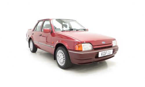 The final incarnations of the Mk4 Ford Escort and Mk2 Orion were celebrated in true Ford tradition by the release of Special Edition models featuring high specification and styling from the sportier models, introducing the Escort Eclipse and here, the Orion Equipe. Both models were available in just two metallic colours, Pacifica Blue or this example in Flambeau Red, (Code 4 0). This exceptional and strictly garaged Orion has been the pride and joy of the previous owner since 1992 and has covered just 29,790 miles from new. The original paintwork is simply incredible with a bright uniform shine and beautiful finish. All factory panels are preserved and only a few carefully touched in markings and a shallow ding to the nearside front wheel arch can be seen. The unique trim is fully intact and free from damage or sun light deterioration and all original badges and decals are intact. Originality seekers will be pleased to see all factory glass etched with the registration number and service stickers in door apertures as well as all light fitment the correct Carello and Ford items. This Special Edition Orion is preserved in remarkable order and is a credit to the two fastidious owners from new.