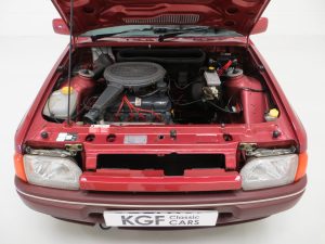 The 1.3 litre HCS 4-cylinder engine with a sequential twin venturi carburettor produces 63bhp allowing a top speed of 98mph and 0-60mph in 13.5 seconds. The engine bay is exceptional clean and well preserved with date stamps and Ford emblem stamps to the factory wings, slam panel and scuttle. Genuine Ford Motorcraft service items are used and the car is totally standard even down to the original exhaust system with distinctive rasp. The 5-speed manual gearbox is light and crisp.