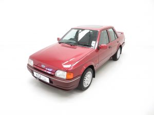 Supplied by Ford Main Dealers, Dereham Ford in Norfolk and later known as Busseys Ford, this example was registered new on the 2nd May 1990 to a Mr Edward Thomson. Mrs Janet White purchased the car in 1992 and has owned it ever since, with a total of just 29,790 warranted miles covered. Every single yearly MOT certificate from the very first in 1993 has been kept and incredibly they were all carried out by Busseys Ford! The stamped service book contains entries from the same supplying dealer and all handbooks, guides, code cards and dealership literature remain in the Ford document wallet along with two Ford keys with dealer fobs. This fabulous 29 year old survivor is sure to please any Blue Oval fan and the condition is a true credit to the owners love for the car. It will make a perfect show car.