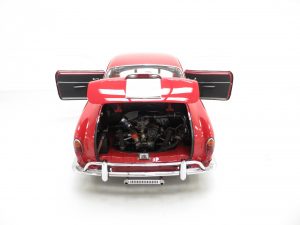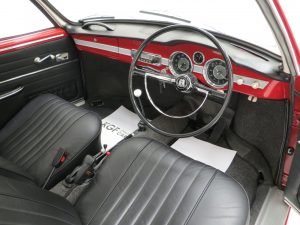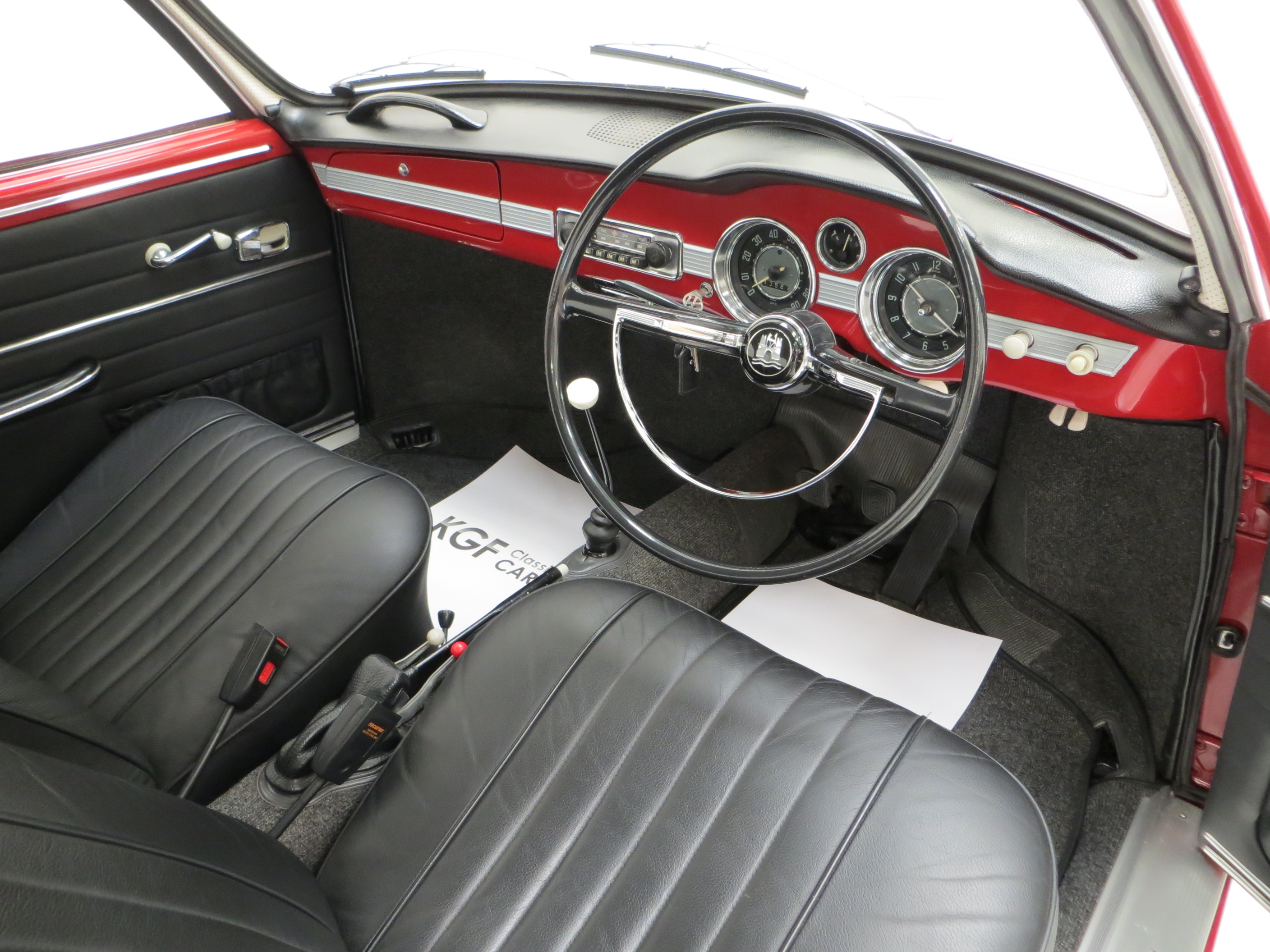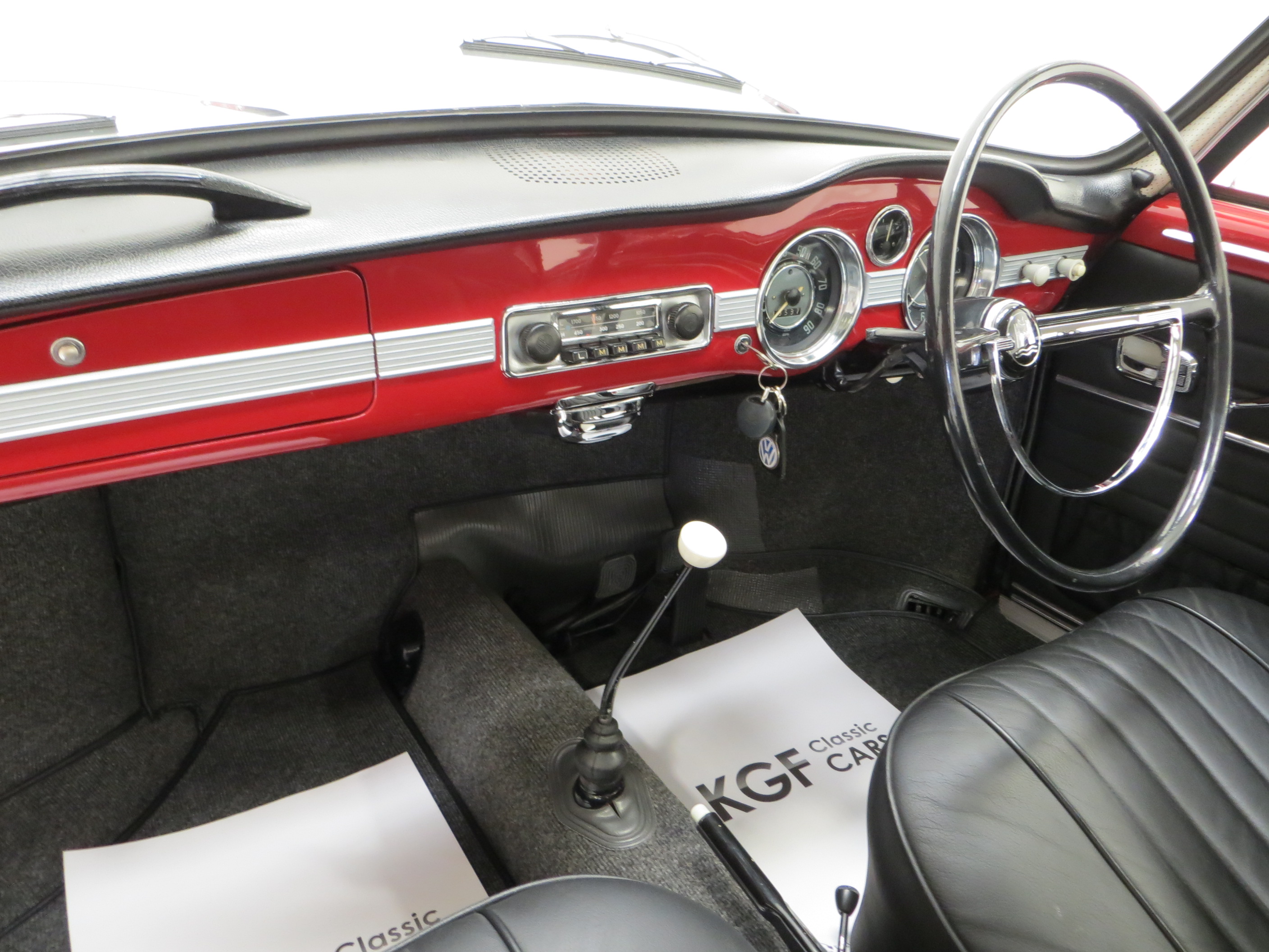 The astonishingly beautiful creation by Italian designer Carrozzeria Ghia and German coachbuilding house Karmann, the iconic Karmann Ghia was launched in 1955. This 1966 example, finished in stunning Ruby Red, (Code L456), from factory Manila Yellow, is a multiple Concours d’Elegance winner having undergone a full body-off restoration in the mid 1990’s in the hands of air-cooled restoration experts, Bughaus of Nottingham. Two boxes full of winning trophies hint towards just how special this car is, and physical inspection reveals just how stunning the paintwork, panel fit and overall finish is with just one miniscule ding to the nearside front wing. All pristine chrome work has been subject to expensive professional refurbishment by Marque Restore. All glass is factory fitment with number plate etching to each pane still present. Meticulous attention to detail has been applied to every curve, line and feature of this car to include, trim, rubbers and the beautifully ornate Karmann Ghia badging. In this case, a restoration costing far in excess of the cars value can only be undertaken for the true love of the car.