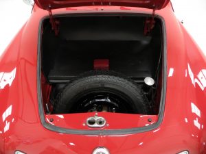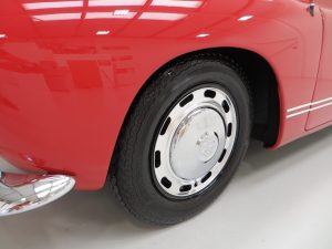 Pristine black painted steel wheels retain the standard look with immaculate stainless-steel wheel covers and chrome hubcaps. Tyres are matching quality brand Vredstein Sprint Classic 155 SR15 including the spare which is stored in the pristine luggage area alongside the original jack, wheel brace and tool roll. Dual circuit braking system with drums all round offer steady straight-line braking.