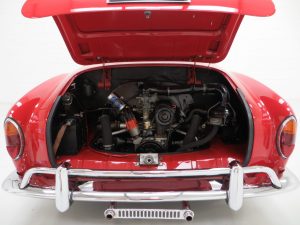An air-cooled 1600cc twin-port engine upgrade has been carried out to an exceptional standard both mechanically and aesthetically. Lift the engine lid and it is easy to see why top marks for cleanliness have been awarded in the Concours d’Elegance categories. No expense has been spared and there has been absolutely no compromise on the quality of parts fitted, as can been seen with the eye-wateringly huge collection of invoices in the history file. The 4-speed gearbox performs exactly as intended and familiarisation is easy.