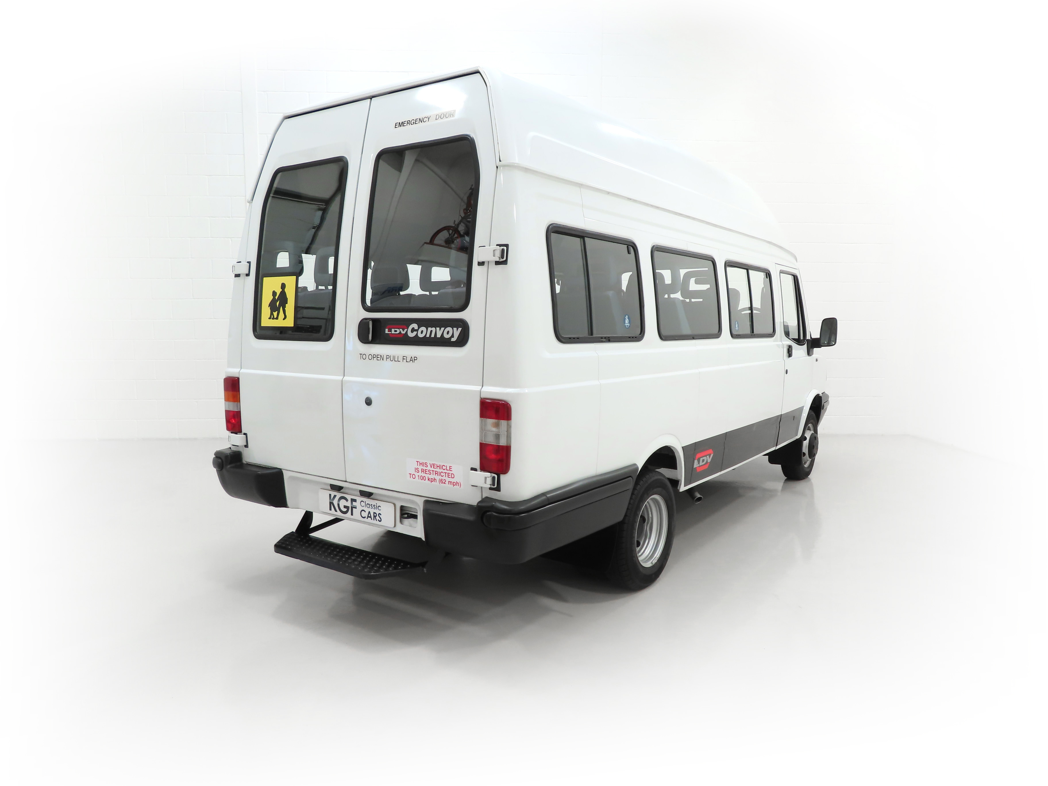 For many years dubbed ‘the king of the primary schools’, this amazing LDV Convoy factory-built minibus was indeed owned by a primary school for 14 years and it has covered a fully verified 33,501 miles from new! Finished in original DAF White, (Code N3NC), the bodywork has defied the years and the fate of many that have long since disappeared. The factory panels are in amazing condition and the paint finish is uniform and bright. Some age-related cosmetic markings and small dings are visible but this example outclasses its contemporaries by miles. There is some light distortion to the rear bumper corners. The underside has never seen repair work and is free from excess applied underseal to reveal the remarkable preserved state. All glass, lights and un-perished rubbers are intact the optional electric side step operates perfectly. It is difficult to comprehend the existence of a better example!