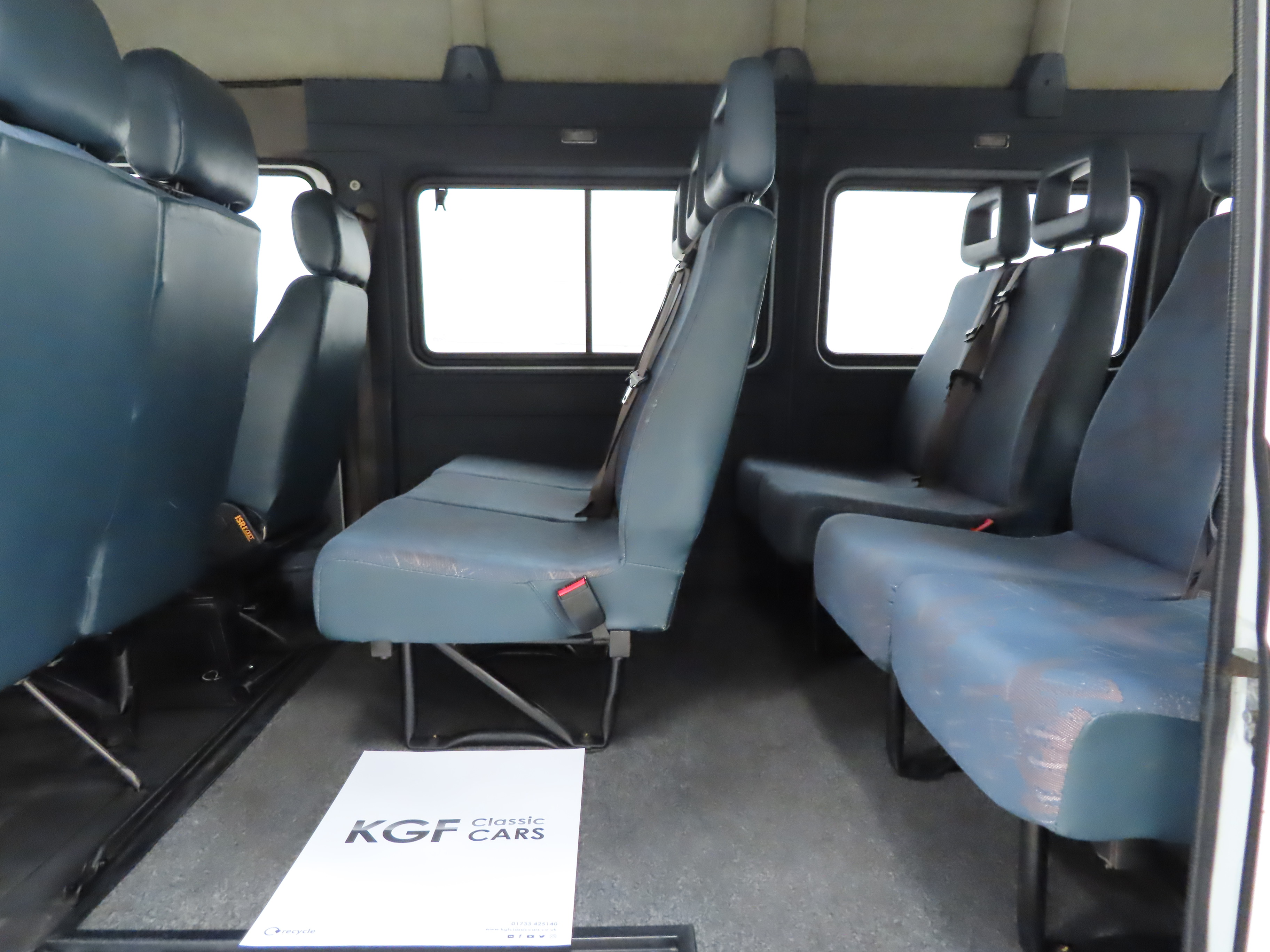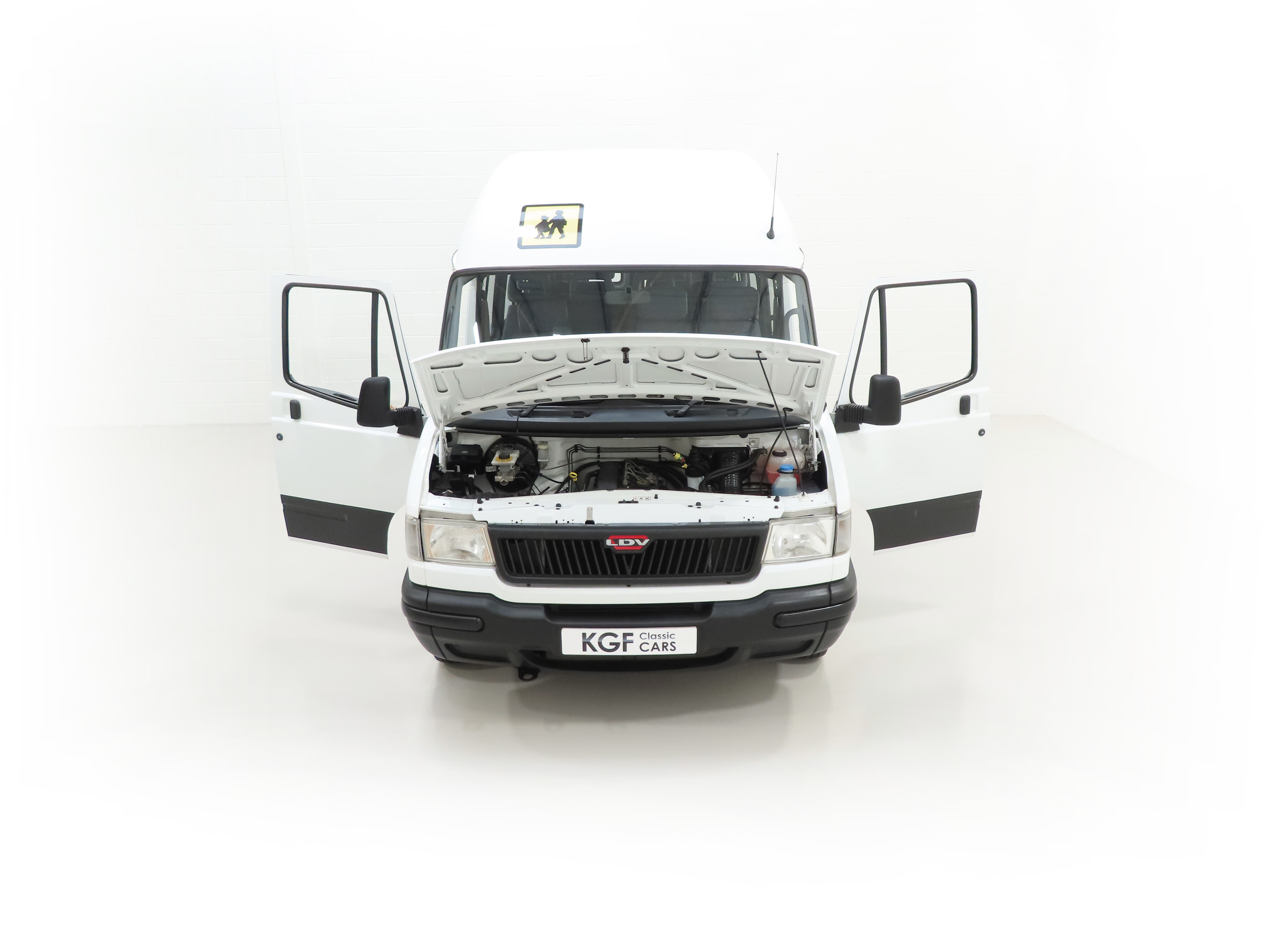 The interior of this bus is exactly as it left the factory and amazingly well presented. 17 seats, all with 3-point seat belts, offer fantastic carrying capacity and safety for children with height adjustable seats belts. The seats are in superb condition and spotlessly clean and no tears, with the vinyl to just three rear seats picked away by naughty back-row kids! All interior trim is intact as is the clean carpeting and fully trimmed headlining which has slight discoloration. All interior equipment operates perfectly including the original LDV stereo and the cab trim and fascia is commensurate with the remarkably low 33,501 miles covered. The factory wheel brace remains clipped behind the cab seats and the fire extinguisher and first aid kit are still present. A superb high-occupancy minibus with excellent headroom and space with huge potential for a campervan conversion. LDV doesn’t actually stand for Luxury Divine Vehicle, but it should!