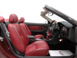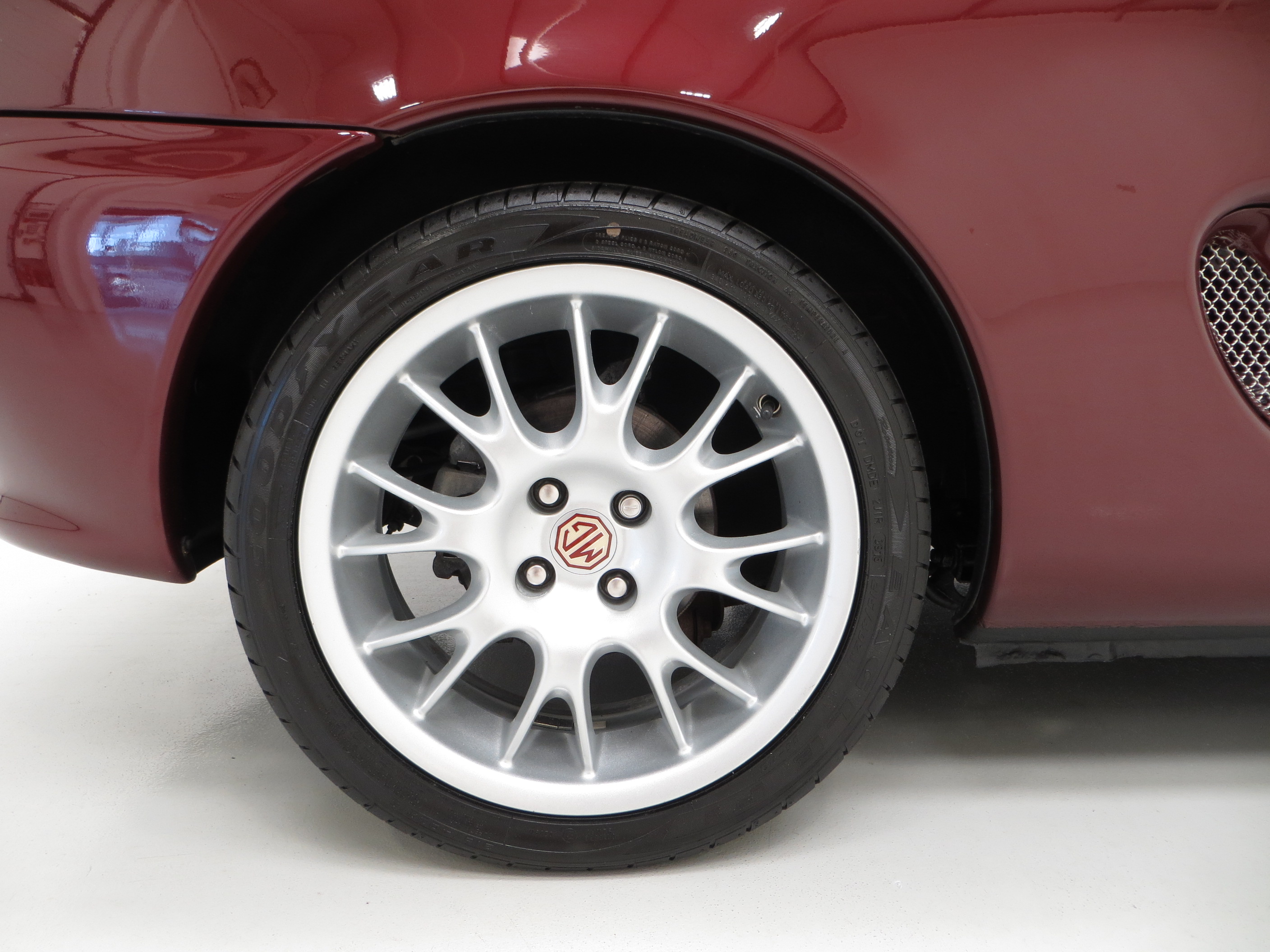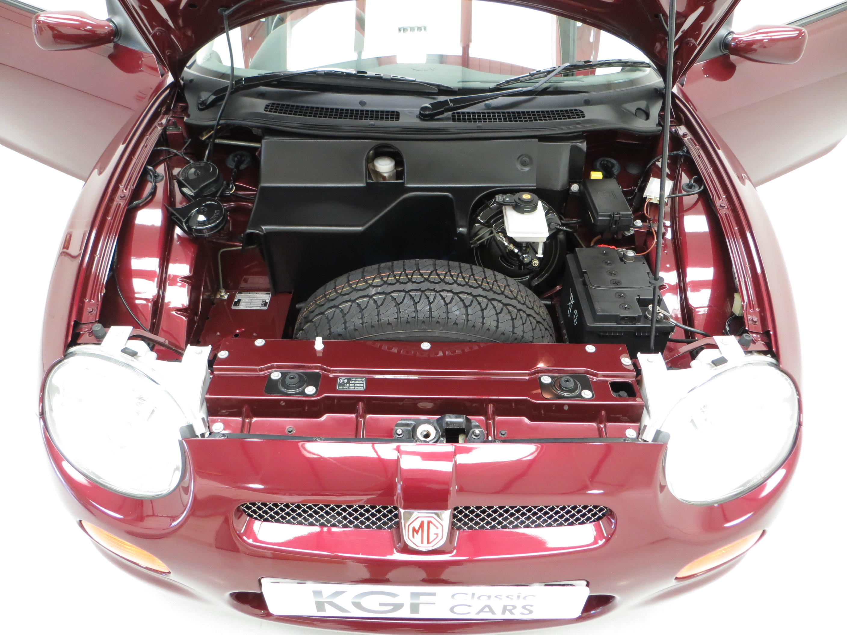 Truly spectacular and beautifully preserved. The interior is trimmed in Grenadine Red leather, (Code CVC), which is applied to the seats, door casings, handbrake and gear lever gaiter and duotone steering wheel. With such few miles covered all are in pristine condition. The unique luxury carpet mats with Grenadine Red piping are fitted and very clean and purists will note all correct 75th Anniversary Edition features are present, including the badge number 1171 of 2000. All gauges, switches and controls function including the MG single disc CD player. Preserved in as new condition and very special.