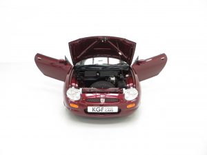 Only 2,000 MG 75th Limited Editions were made for the global market of which the UK market was allocated just 500, this UK example being number 1171. Registered on the 1st September 1999 and supplied by MG Main Dealers, Evans Halshaw of Macclesfield. A new car order form, sales invoice and handover form made out to first owner, Mrs Amelia Tester, confirms the price paid of £19,995. Clearly cherished by the four former keepers from new, the fully verified mileage covered is a mere 12,956 miles. The large history folder contains a comprehensive collection of receipts, invoices and previous MOT certificates leaving in no doubt the fastidious care this car has enjoyed. The original handbooks, instruction pamphlets and code tags are contained in the leather MG wallet along with the original service book with 10 stamped entries. The most recent documented cambelt and water pump change was carried out in 2016 at 10,854 miles. Two sets of keys with dealer fobs and a Limited-Edition Sales Pack including the rare sales brochure complete the history file. Previously sold by KGF Classic Cars who are thrilled again to offer this unspoiled, preserved and prized MGF with remarkably low mileage.