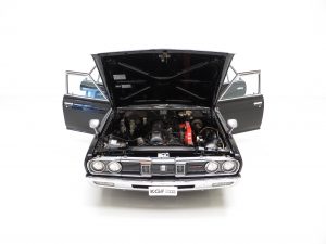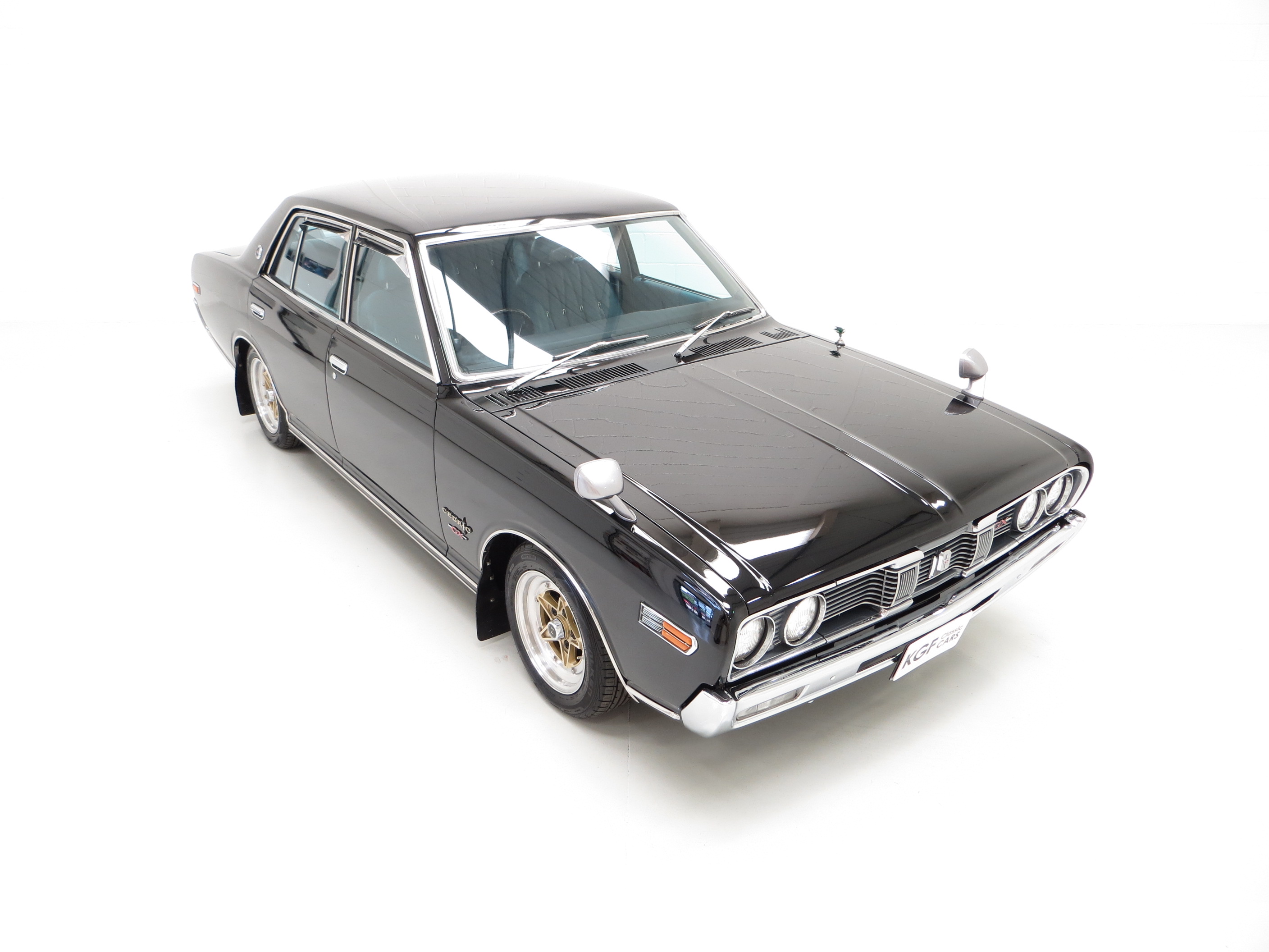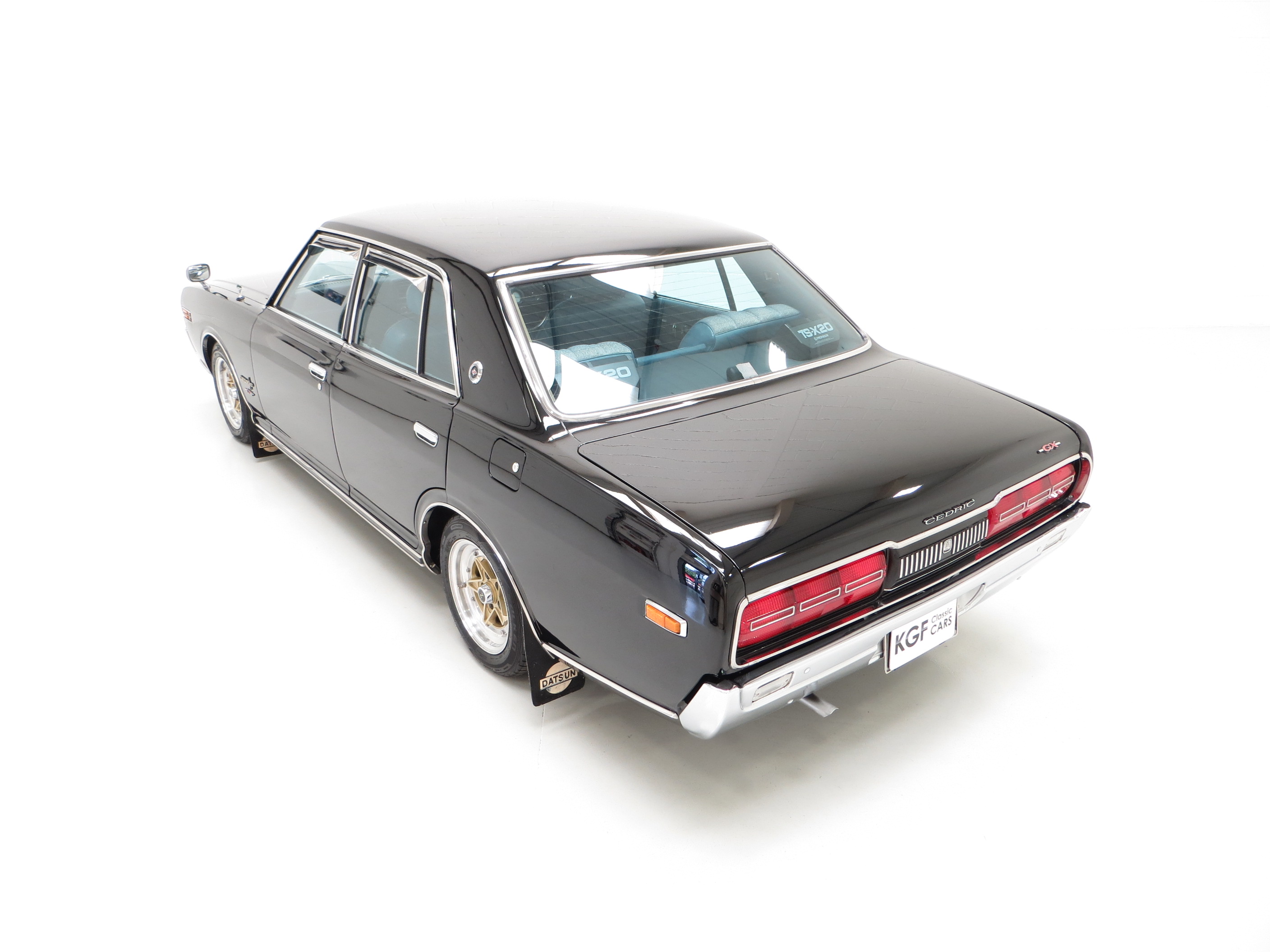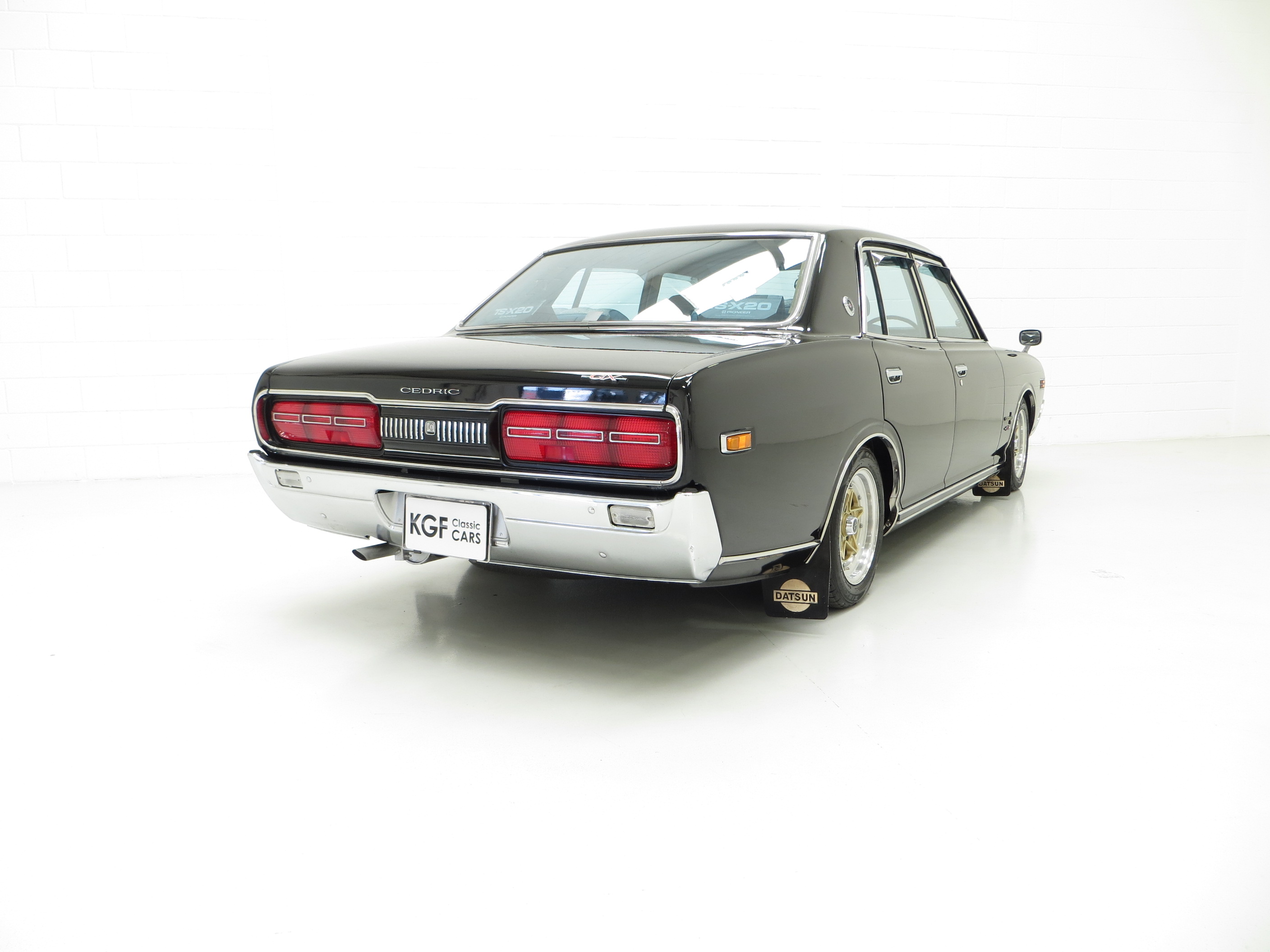 This retro Nissan Cedric 230 GX, also known internationally as a Nissan Gloria or Datsun 200c, 220c, 240c and 260c, is stunning in condition and appearance. The factory correct Black paint has a deep gloss sheen with a mirror reflective shine thanks to regular polishing on the show circuit. Factory chrome enhancements adorn every panel and are virtually perfect in condition contrasting against the black paint beautifully. All badges, glass and trim is difficult to fault and tasteful accessories such as side window wind deflectors and mud flaps on a slightly lowered ride height create the look envied by many. This car is so cool and turns heads on every outing!