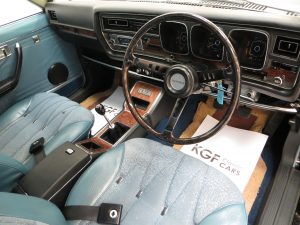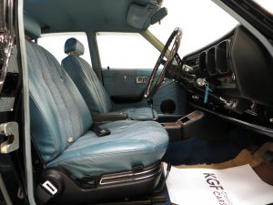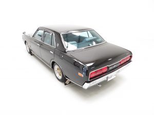 Luxury, space and comfort were this models strengths that can still be appreciated today when seated inside this clean well-appointed example. The deeply padded blue cloth upholstered seats are fully adjustable including height for the driver and does show wear still being the original material. Incredible detail can be witnessed in all aspects from the chrome seat buttons to the perfect matching blue door cards finished in three material types. A Datsun sports steering wheel is fitted and the original steering wheel is present. Specification is high even by today’s standards and neat features such as the clock with sweeping second hand and date display still function. Deep pile blue carpeting has been protected by genuine wool Cedric carpet mats front and rear and the headlining, fake wood trim and padded dash are undamaged. The stainless steel Nissan sill covers to both sides are fitted and the boot area is huge, clean and still retains the original vinyl flooring. An uprated sound system is fitted with a period head unit. Banging.