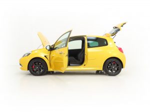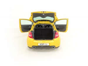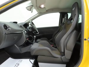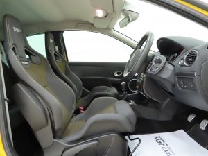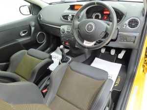 The hugely desirable factory optional, (Code DRAP19), Renaultsport Recaro ‘Yellow Dot’ front seats priced at £970 when new are amazing both in support and condition. The drivers bolster protrudes resulting in even very low mileage examples suffering from wear, but this car has virtually none, thanks to watchful owners entering and exiting the car with full knowledge of this fact. The sense of occasion and anticipation once in the driver’s seat is quickly felt with features such as the drilled aluminium pedals, start button and everything is spotlessly clean and operational. Renaultsport carpet mats have been fitted from new and the stainless door sills displaying the logo has a slight mark on the drivers side. The door shuts gleam with factory stickers and labels intact. A highly cherished and very special car.