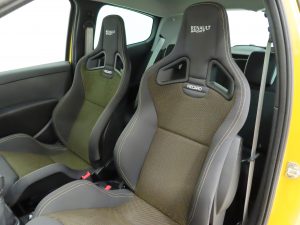 This Clio Renaultsport 200 is finished in stunning and sought-after i.d Liquid Yellow paint, (Code TEJ37), a factory option costing £1,300. The amazing paint boasts a uniform sparkle and ultra-bright factory finish thanks in part to garaged pampered ownership to amaze even the most ardent scrutineers. The Black Gloss to the exterior trim is stunning and contrasts beautifully against the Liquid Yellow with just a few tiny touched-in marks barely visible. The exterior satin chrome door handles are perfect and all glass and light units are crystal clear. A super-clean underside and wheel arch apertures are thanks to an intensive clean carried out in October 2022 to help reflect the low mileage and enthusiast ownership this performance Renault has enjoyed. An outstanding example.