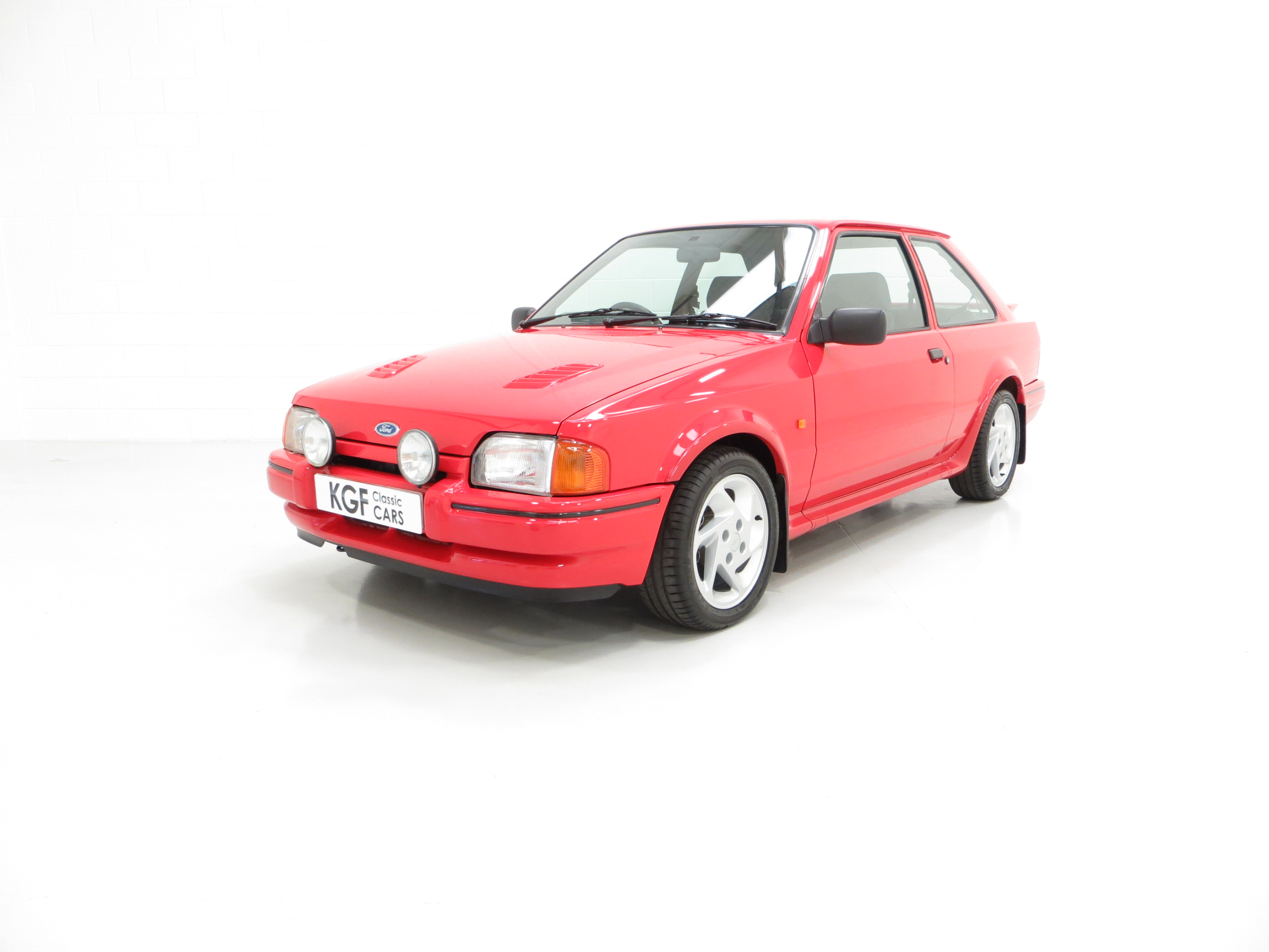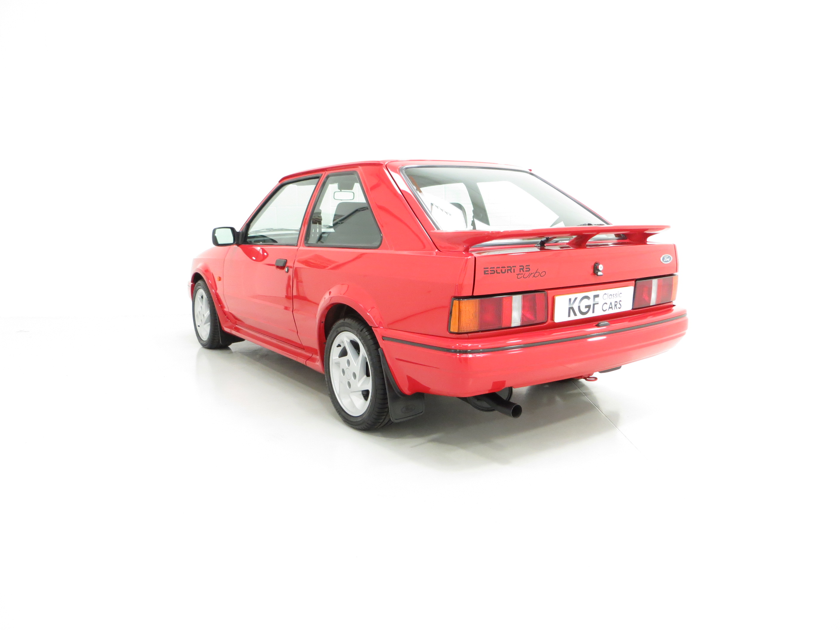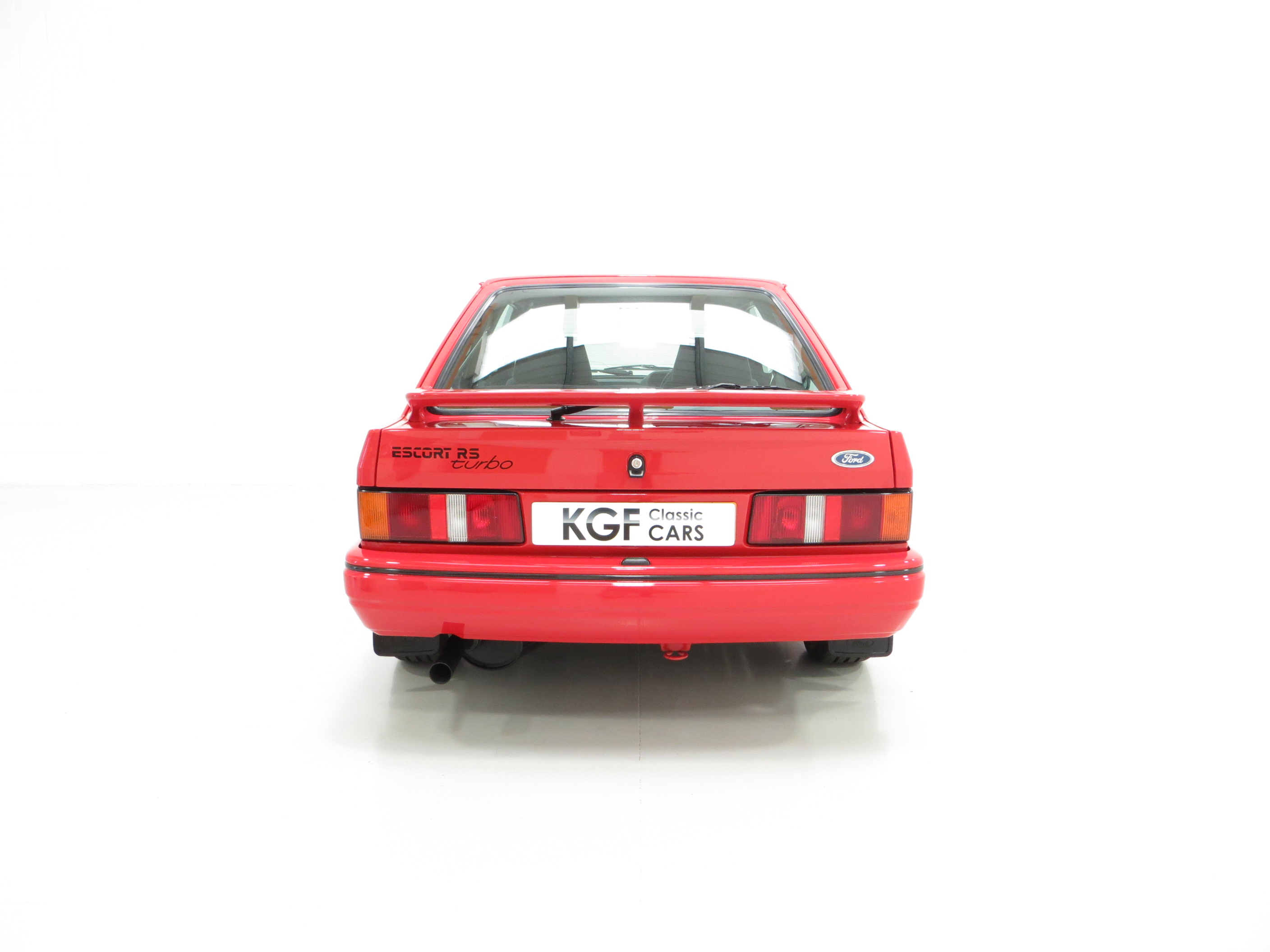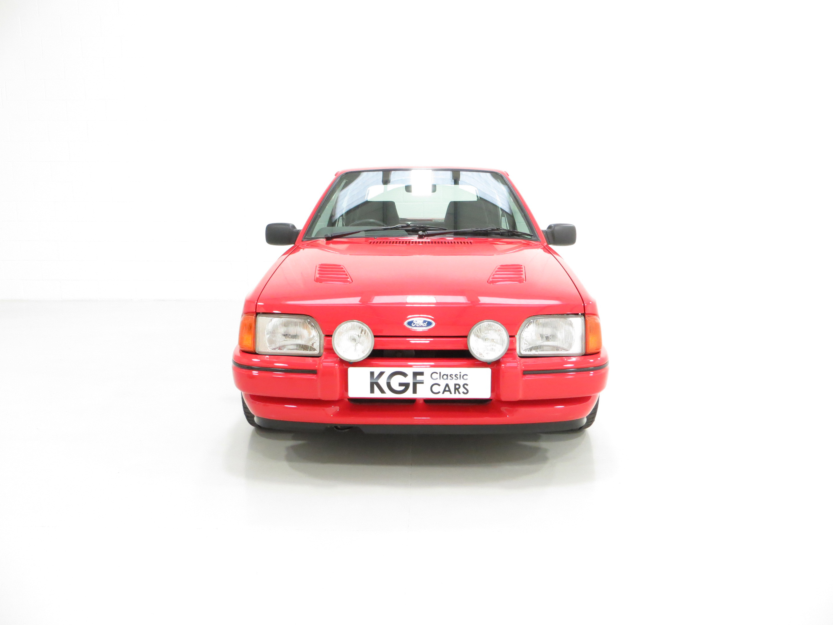 Built in March 1987, this very early Series 2 Ford Escort RS Turbo was registered new on 28th April 1987, the supplying Ford Main Dealer being Raleigh Garage (Bideford) Ltd. The original Ford plastic wallet houses all vehicle handbooks, guides and dealership literature as well as the original stamped service book. The last service was August 2018 at 35,239 miles and the cambelt, tensioners and water pump were changed in 2016 at 34,298 miles. Previous MOT certificates date back to 1991 to further verify the mileage along with Ford main dealer invoices. Completing the history file is the original blue V5 document and two Ford keys. KGF Classic Cars are privileged to present this amazing example to the market, ready for the next dedicated custodian to enjoy.