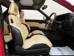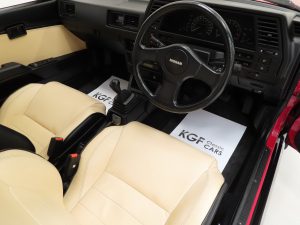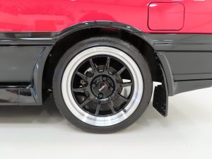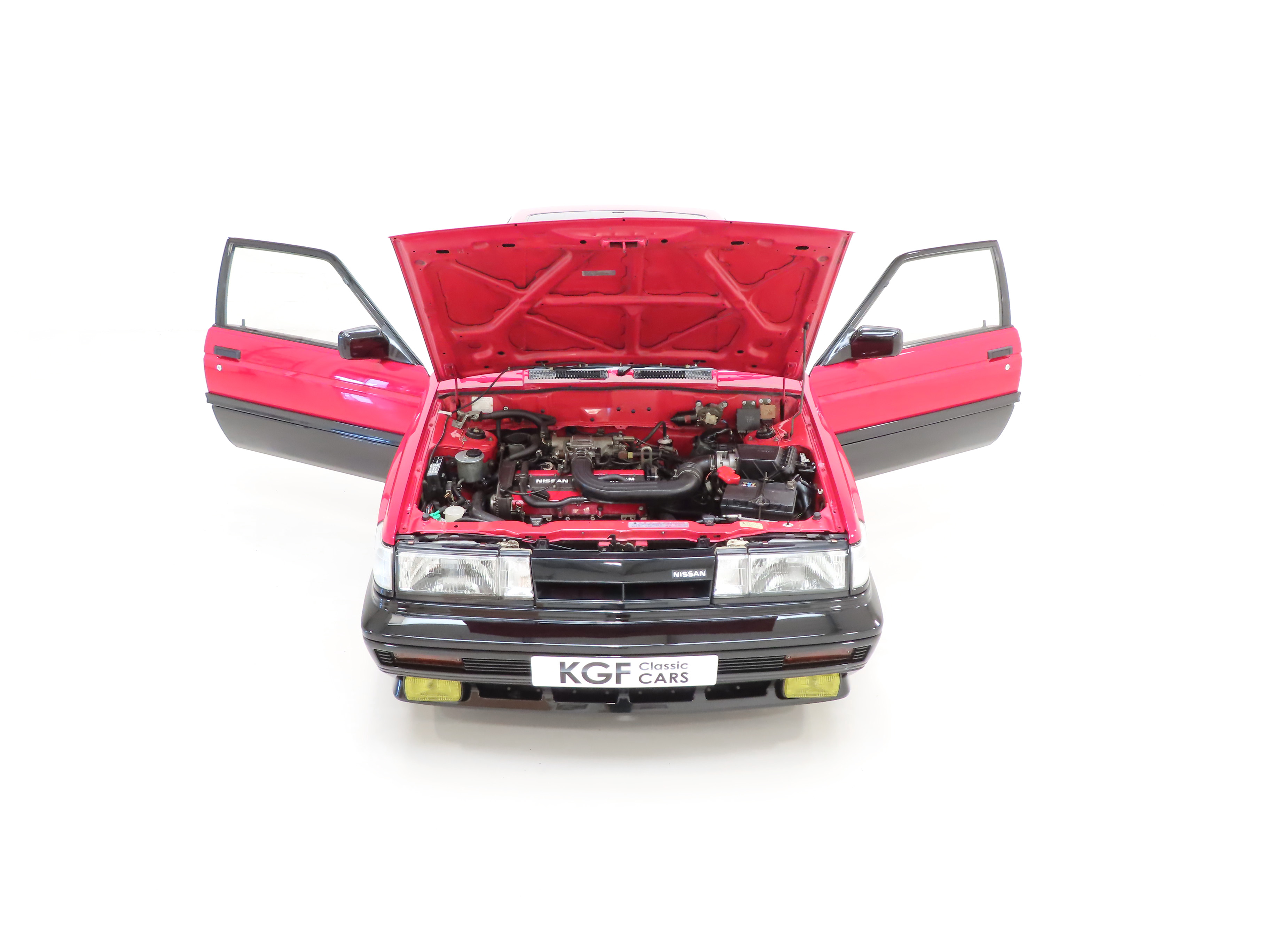 This deliciously retro riding Nissan Sunny Coupe is finished in striking Bright Red over Gloss Black, (Code 534). The gorgeous paint finish is virtually flawless with a show worthy uniform shine throughout. The body panels are pin straight in incredible preserved condition as is the delightful 1980’s boxy body kit and bumpers. There is a small area to the offside door mirror and nearside front indicator bezel where slight overzealous polishing is evident but hardly noticeable. All glass is etched with the registration and the rubbers and trim sections are in excellent order. The low stance and discreet RZ-1 and Nismo styling accessories complete the Japanese retro ride ethos.