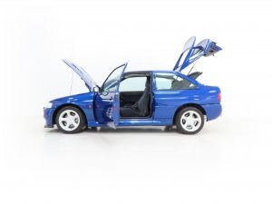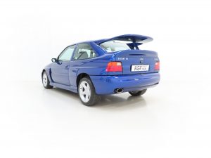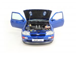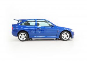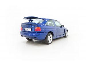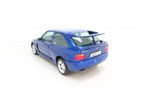 The Ford Escort RS Cosworth was a sports derivative and rally homologation special of the fifth generation Ford Escort. It was designed to qualify as a Group A car for the World Rally Championship. It was available as a road car from 1992-96 in limited numbers from Ford’s Specialist Vehicle Engineering, (SVE), team. It combines the hand-assembled engine expertise of Cosworth and the coach-building crafts of Karmann. In order to accommodate the larger Cosworth engine and transmission Ford developed the car around the chassis and mechanicals of its predecessor, the Sierra Cosworth. A very rare car with only 7,145 examples being produced. (Source Wikipedia, 1995 Edition One RS Brochure and the RS Owners Club).