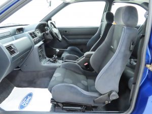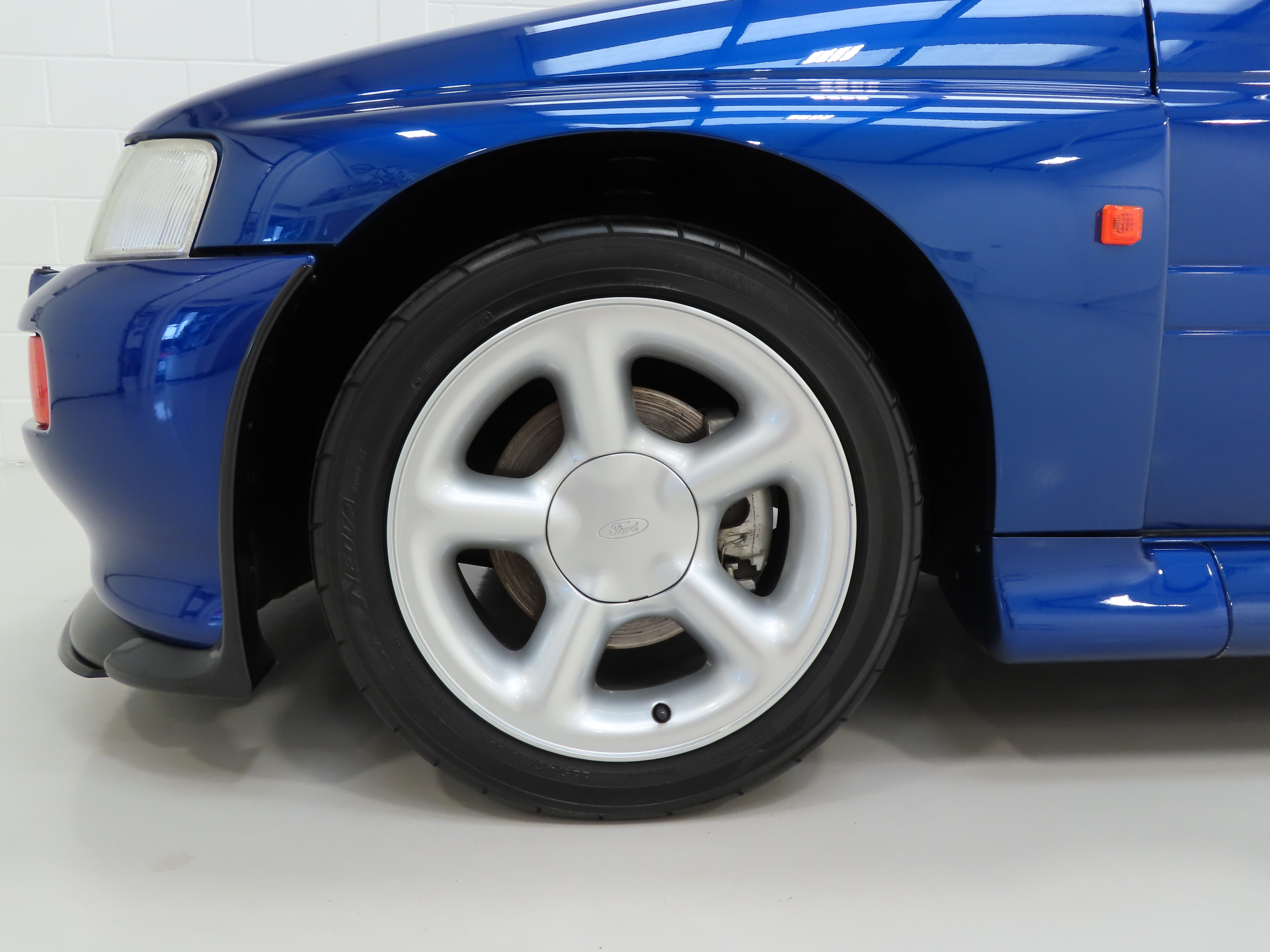 Immaculate Ford RS Ronal 8 X 16” five-spoke alloy wheels are shod in Yokohama 225/45 R16 tyres with ample tread. The space saving spare wheel is the unused factory Pirelli item with coloured banding and tiny nobbles still intact. Electrically-controlled ABS anti-lock system with two microprocessors and ventilated front and rear discs offer immense stopping power.