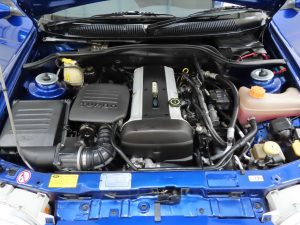 The RS Cosworth powerplant warrants little introduction. Fitted with the factory standard Generation Two Ford EEC IV electronic engine management system and Garrett AiResearch T25 turbocharger and intercooler, the motorsport pedigree of this car is obvious. Alterations from standard specification are limited to a Graham Goode Racing, (GGR), chip and stainless exhaust system to replicate the original so the output of 217HP is slightly improved. Expect the car to accelerate rapidly through 0-60 in 5.7 seconds and reach a top speed of 144mph as quoted by Ford. The clean engine bay is exactly as Ford intended and displays factory seam welds and weld dots to the wings along with original plates and stampings to pass strict Ford aficionado scrutiny. The permanent Ferguson four wheel drive system with 34/66% front/rear power split mated to a MT 75 5-speed gearbox is a delight.