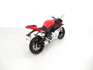 Using the liquid cooled 125cc 4-stroke single cylinder SOHC unit featuring electronic fuel injection and TCI digital ignition, power output equates to 15hp and 12.4Nm maximum torque. Weighing just 142kg, this lightweight machine performs and as good as it looks and offers the feel of a larger powered bike yet opens the door to riders without a full license. The engine and all ancillaries are spotless with the exception of a tiny scratch to the exhaust canister. The 6-speed one down five up gearbox performs perfectly and is very easy to use. Awesome fun!