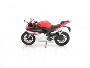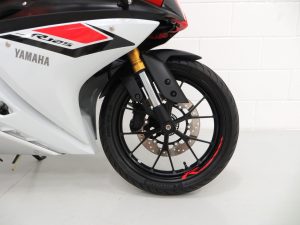 A direct spin off from the World Championship winning Yamaha R6, the race-bred technology within the R-Series DNA is obvious just looking at them. This one private owner YZF-R125 is finished in desirable factory Racing Red and looks simply stunning. Commensurate with the incredibly low 382 miles covered, the bodywork, frame and faring are in virtually as new condition with only two light markings to the rear faring, barely visible. All factory decals, stickers and labels are present and correct and the identification and information plates and stock frame number stamping are clearly legible. All mirrors, light clusters, rubbers and other trim are fully intact and the super modern high-tech LCD display is perfect. The lockable sculptured thin racing seat is immaculate and lifts to reveal an untouched full toolkit. The ultimate class-leading 125cc supersport.