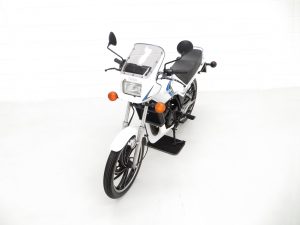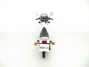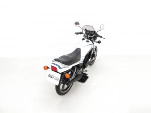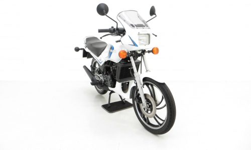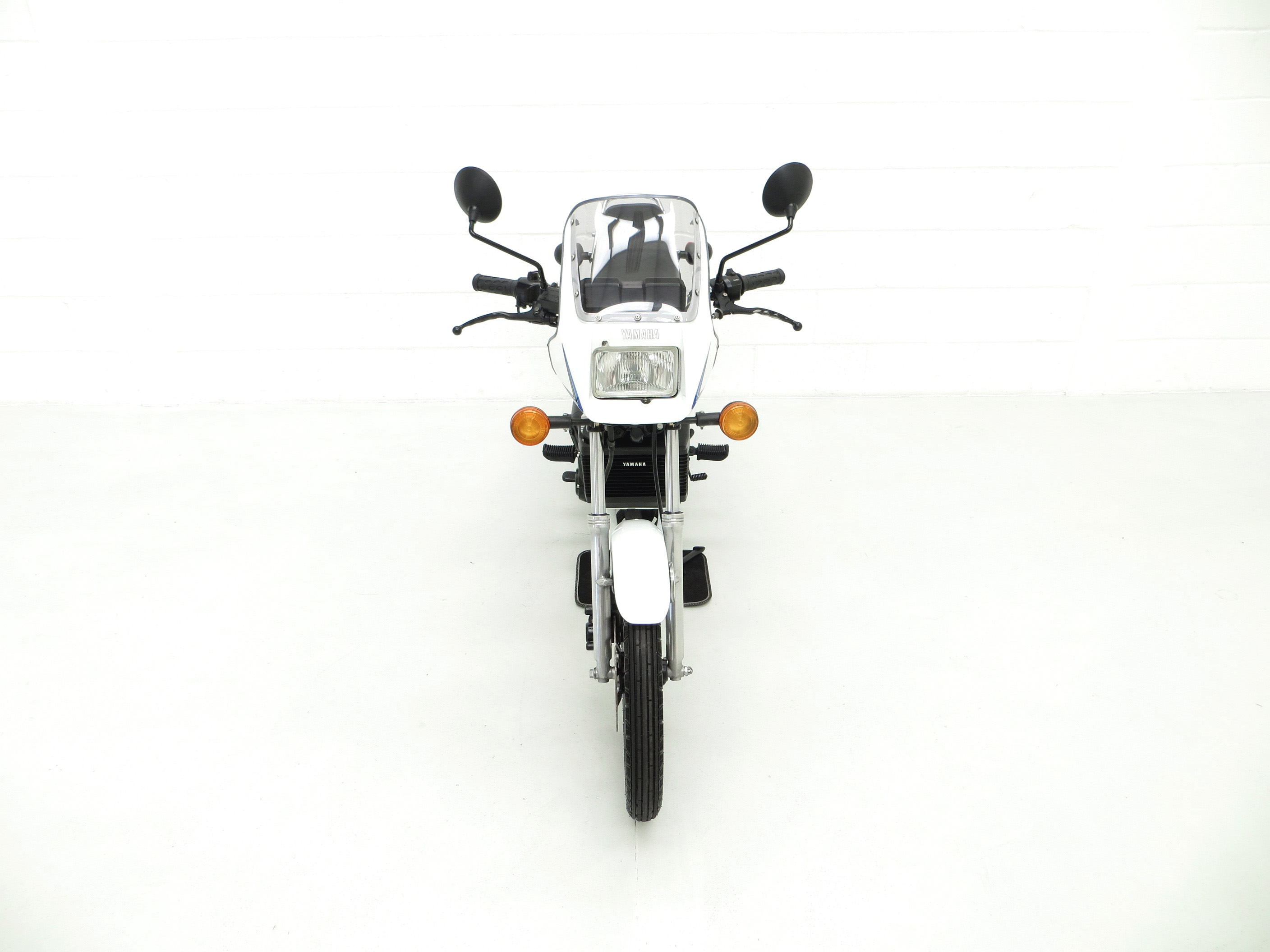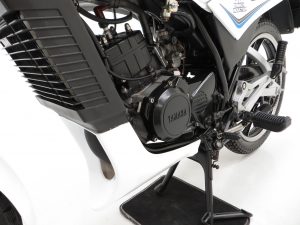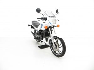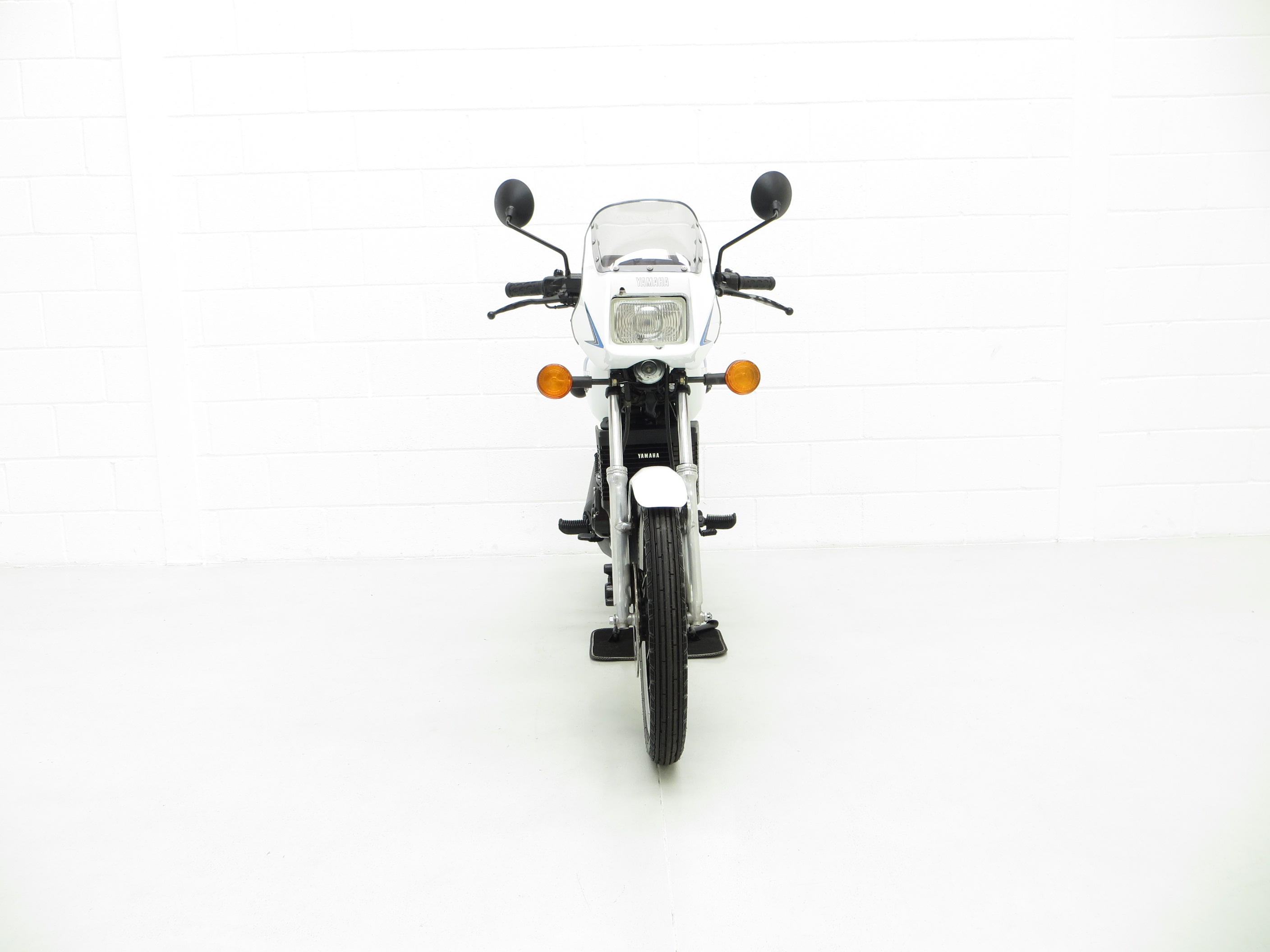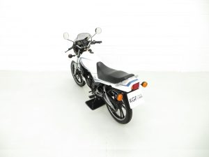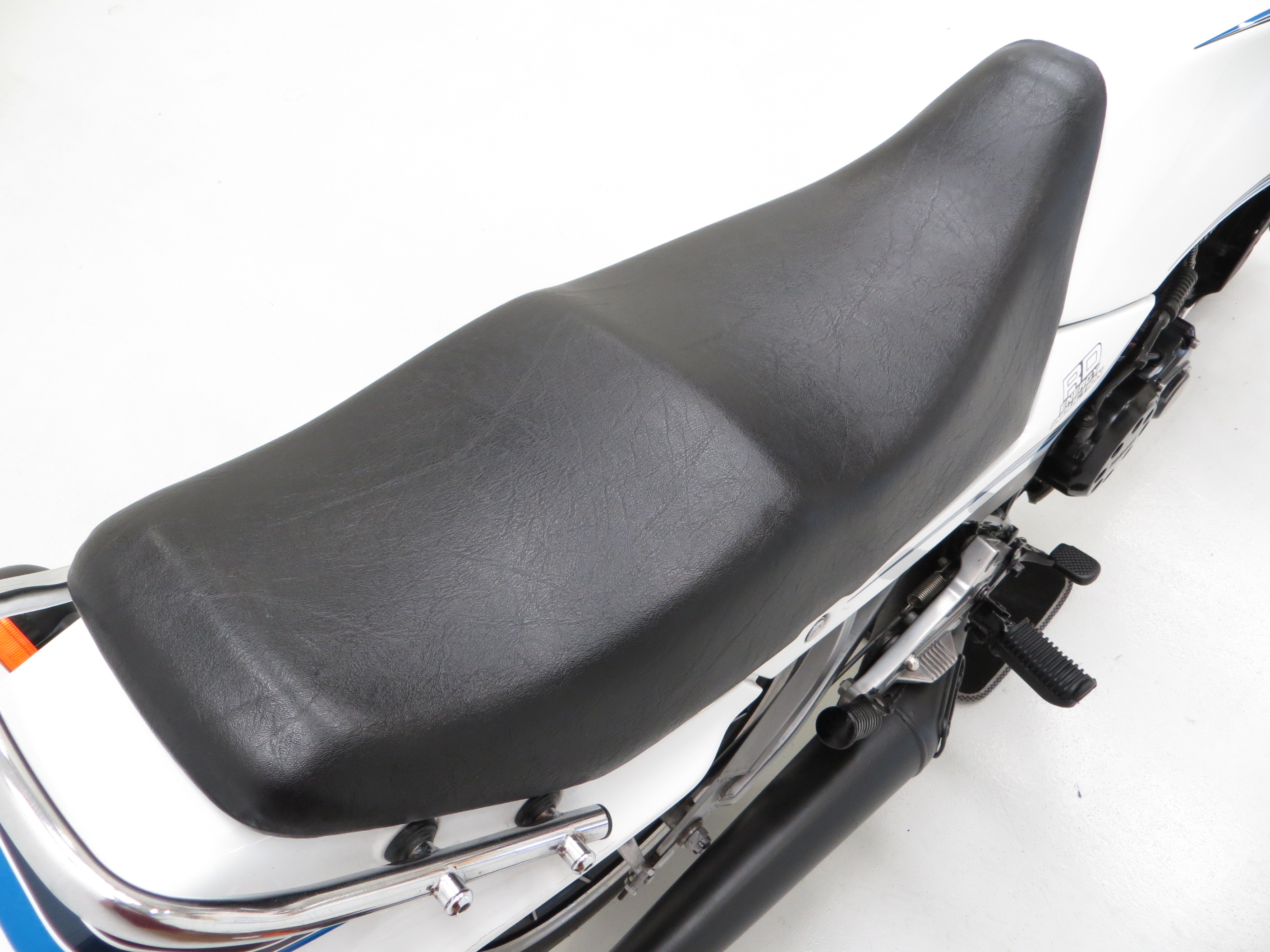 Finished in white the appearance of this successful 1980’s motorbike is instantly a hit and is presented in clean condition. The plastics and decals are sharp and all the switches, lights and controls work perfectly. The petrol tank has a lovely glossy shine and the frame is without damage. The seat has no rips and the bikini faring and front screen have none of the usual stress fractures. The handlebar grips show wear. A fabulous piece of Yamaha two-stroke history.