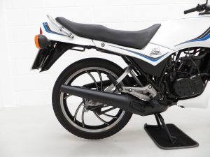 Forming part of a collection with a wonderful display of memorabilia including illuminated Yamaha showroom signs this matching numbers UK bike was a must have in Mr Parkers collection. Having owned one new, this 1984 restored example was as close as he could find to his actual bike and having viewed many poor examples this was the only one that met the grade and was duly placed in the collection after a thrash round the block! The object of most seventeen year olds desires, this RD125 brings back happy memories.