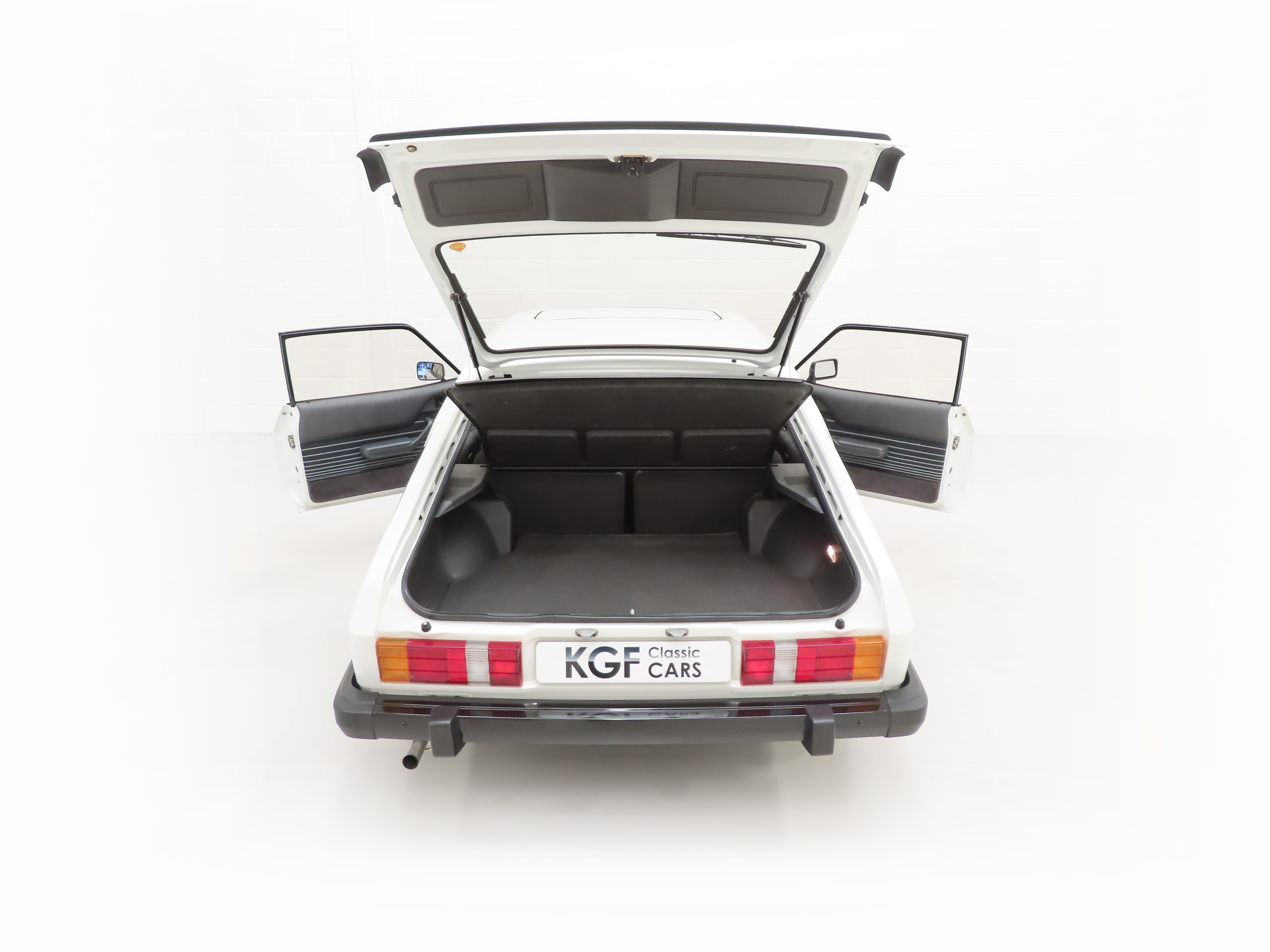 Tailgate spoiler, tilt/sliding sunshine roof, front spoiler, black louvred grille, twin door mirrors with remote to drivers, side decals, laminated windscreen, opening rear quarter windows, heated rear window, tailgate wash/wipe, rear fog lamps, split folding rear seats, head restraints, sun visors with passenger vanity mirror, glove box with lock and lamp, ammeter and oil pressure gauge, tachometer, quartz analogue clock, courtesy lights, two speed wipers with intermittent wipe, two speed heater fan, front and rear ashtrays, rheostat control, P32 radio, torch key.