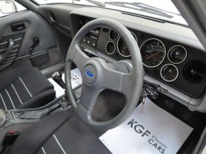 The factory fitted 2.0S OHC ‘pinto’ unit is fitted with the twin venturi carburettor, famed for its performance and robust and simple mechanics. The engine is quiet and performs brilliantly with a top speed of 113mph and 0-60mph time of 9.6 seconds. The engine bay is beautifully clean with factory stickers and plates displayed and even bright factory markings long lost or at least very faded on most examples! The 5-speed gearbox is light and works through the gears precisely, and the clutch feels positive.