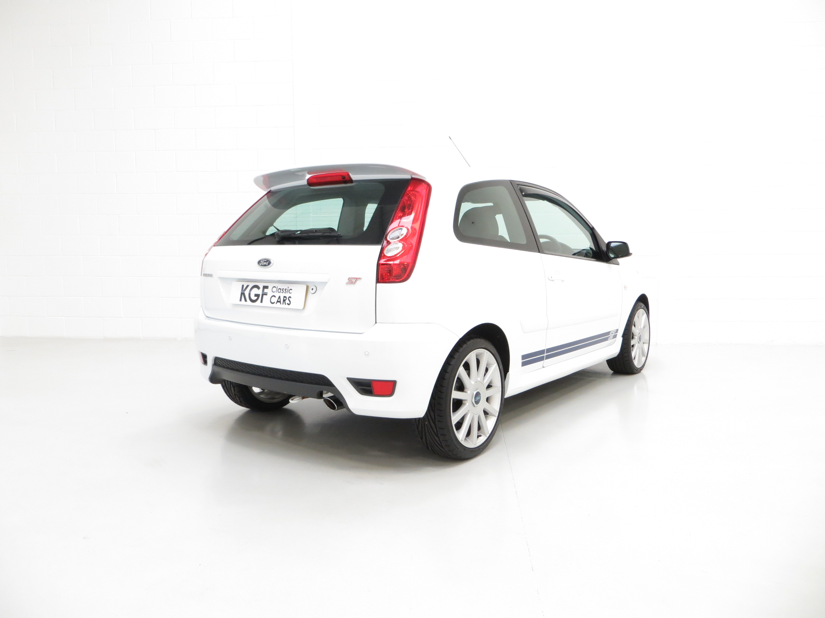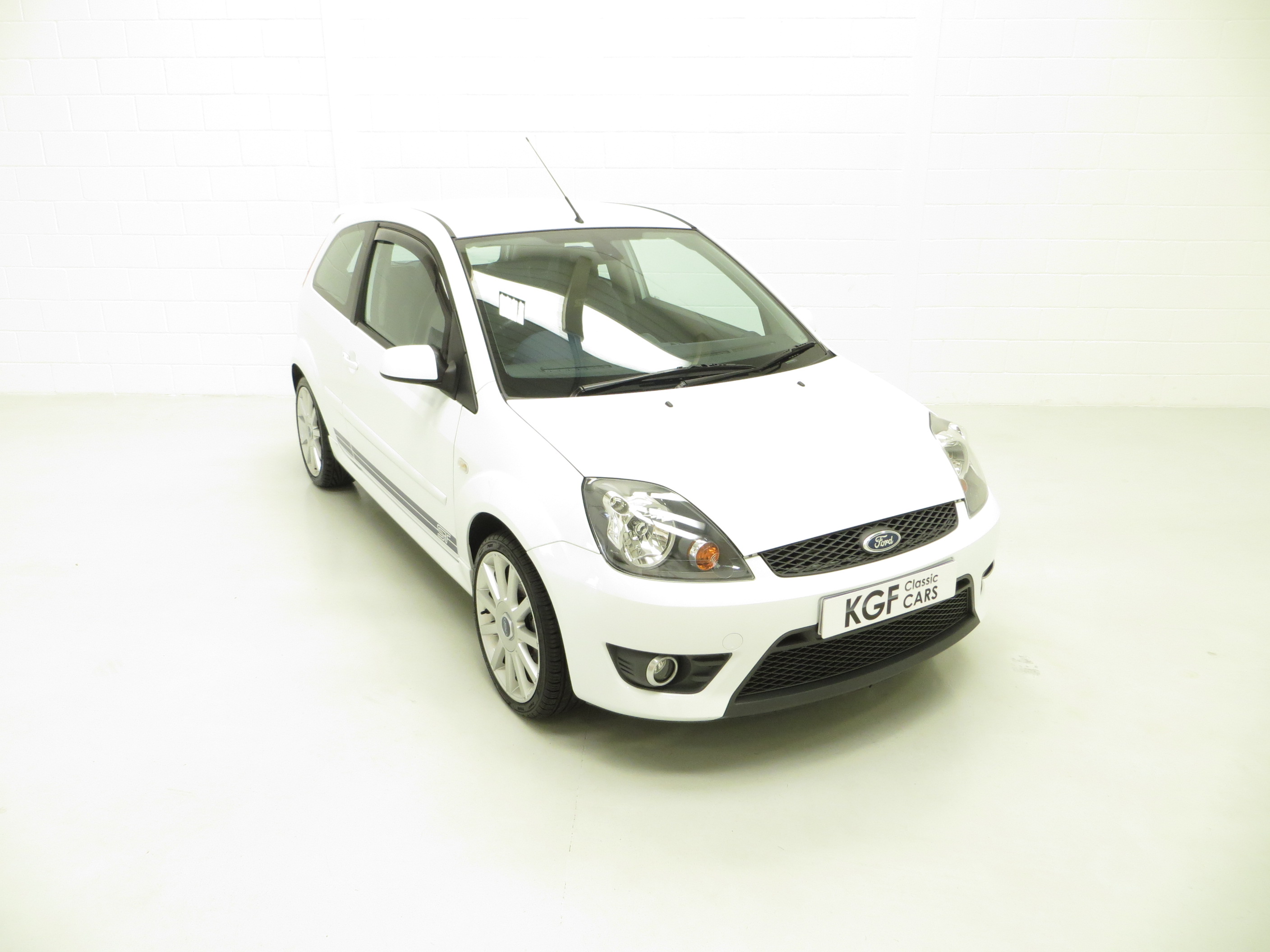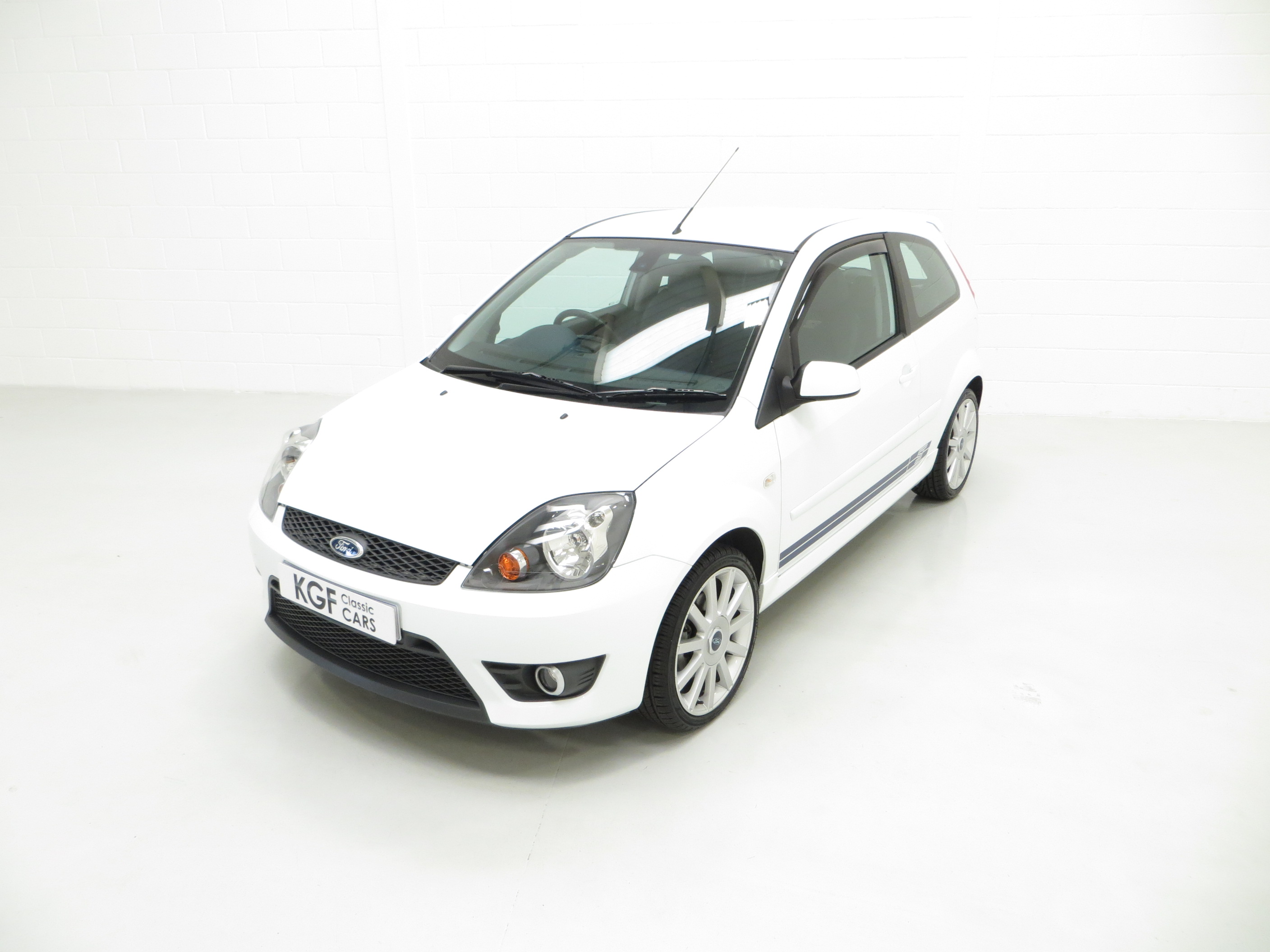 Fast becoming a sought after modern classic hot hatchback, the Fiesta ST150 presented here has covered just 39,923 miles from new and remains in totally standard form. The factory original Frozen White paintwork, (Code JD3), looks superb with a uniform finish and all original panels are pin straight. There is a tiny ding above the drivers door handle. The racy ‘Aero’ body-styling kit and chunky sports trim sections, badges and optional GT side stripes are in superb order. Originality seekers will be pleased to see factory stickers and labels in the door shuts as well as Ford main dealer number plates. The underside and wheel apertures are clean and it is clear to see that this garaged example has escaped the boy racer scene! A prime example of the facelift Fiesta ST150.