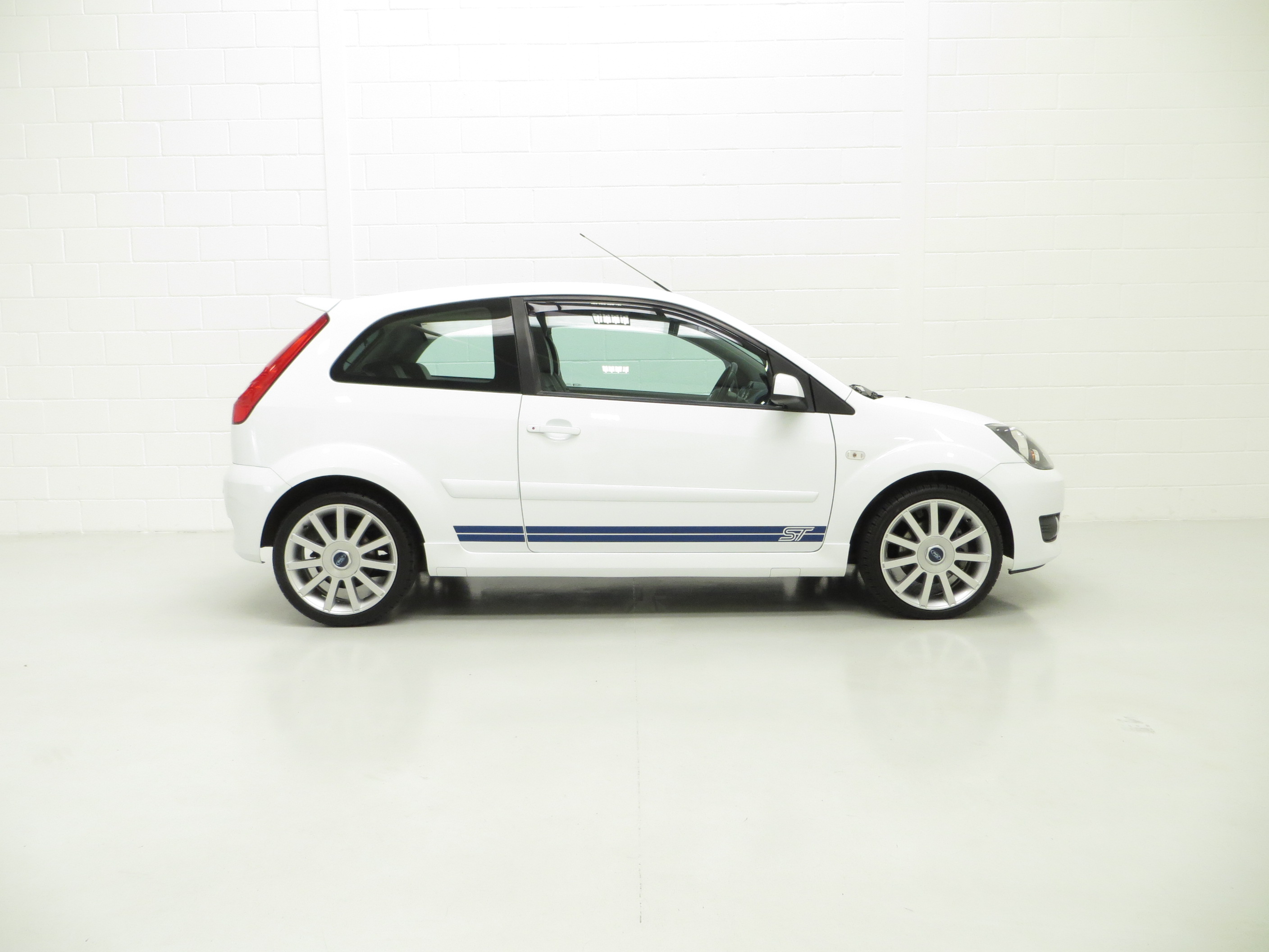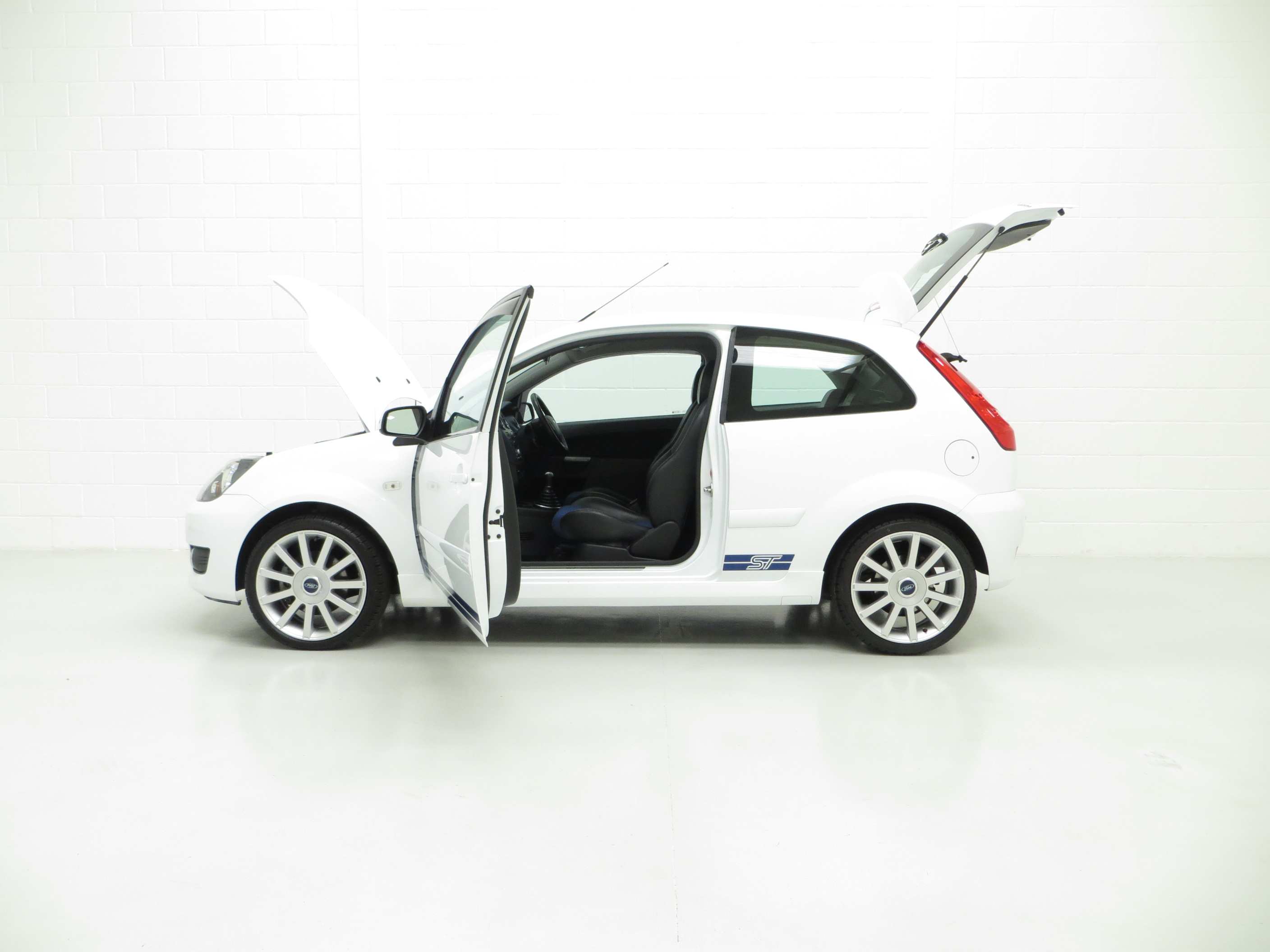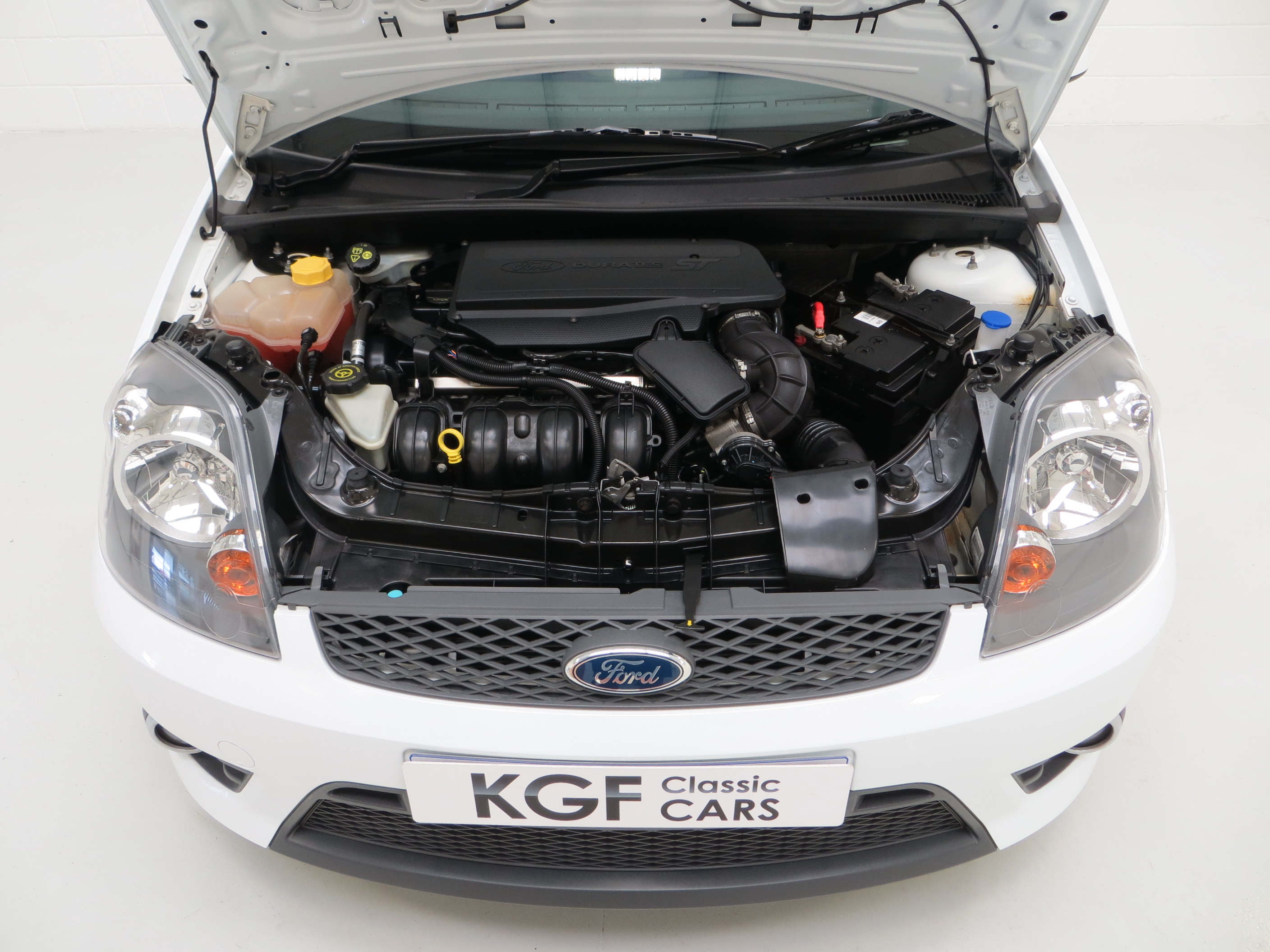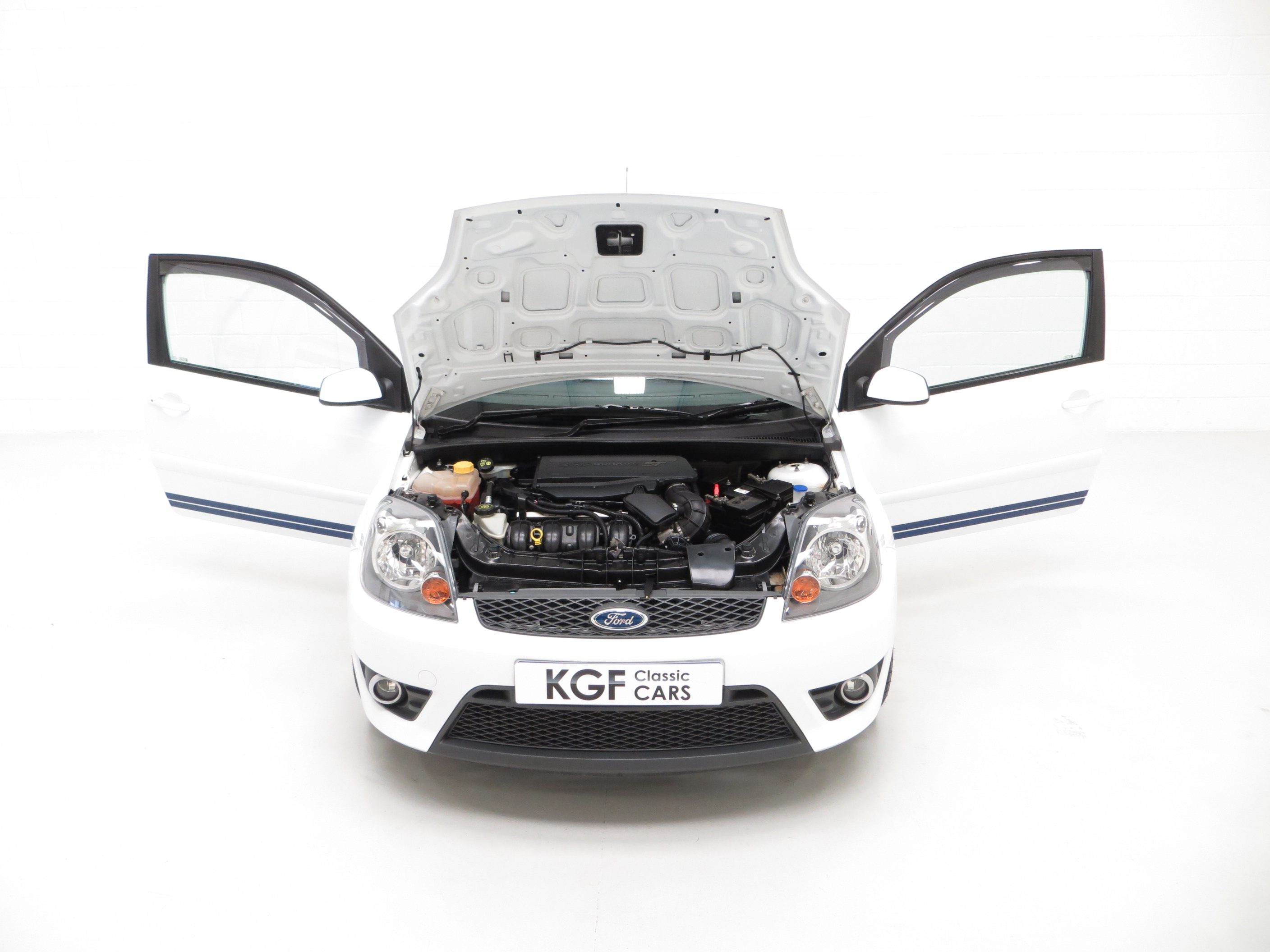 Fast becoming a sought after modern classic hot hatchback, the Fiesta ST150 presented here has covered just 39,923 miles from new and remains in totally standard form. The factory original Frozen White paintwork, (Code JD3), looks superb with a uniform finish and all original panels are pin straight. There is a tiny ding above the drivers door handle. The racy ‘Aero’ body-styling kit and chunky sports trim sections, badges and optional GT side stripes are in superb order. Originality seekers will be pleased to see factory stickers and labels in the door shuts as well as Ford main dealer number plates. The underside and wheel apertures are clean and it is clear to see that this garaged example has escaped the boy racer scene! A prime example of the facelift Fiesta ST150.