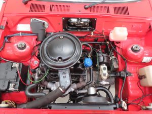 Five factory fitted alloy road wheels are in excellent condition. Four matching and correctly sized for the Ghia model 155/80 R12 tyres have been fitted brand new in October 2022 being very difficult to source. The spare wheel sits in the lower luggage area alongside the original jack and even the vinyl sunroof storage bag! The dual line servo assisted brakes with 8.7” front discs and 7.0” rear drums bring the car up to a steady, straight and assured halt.