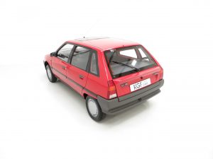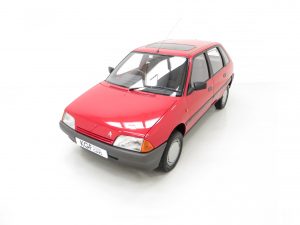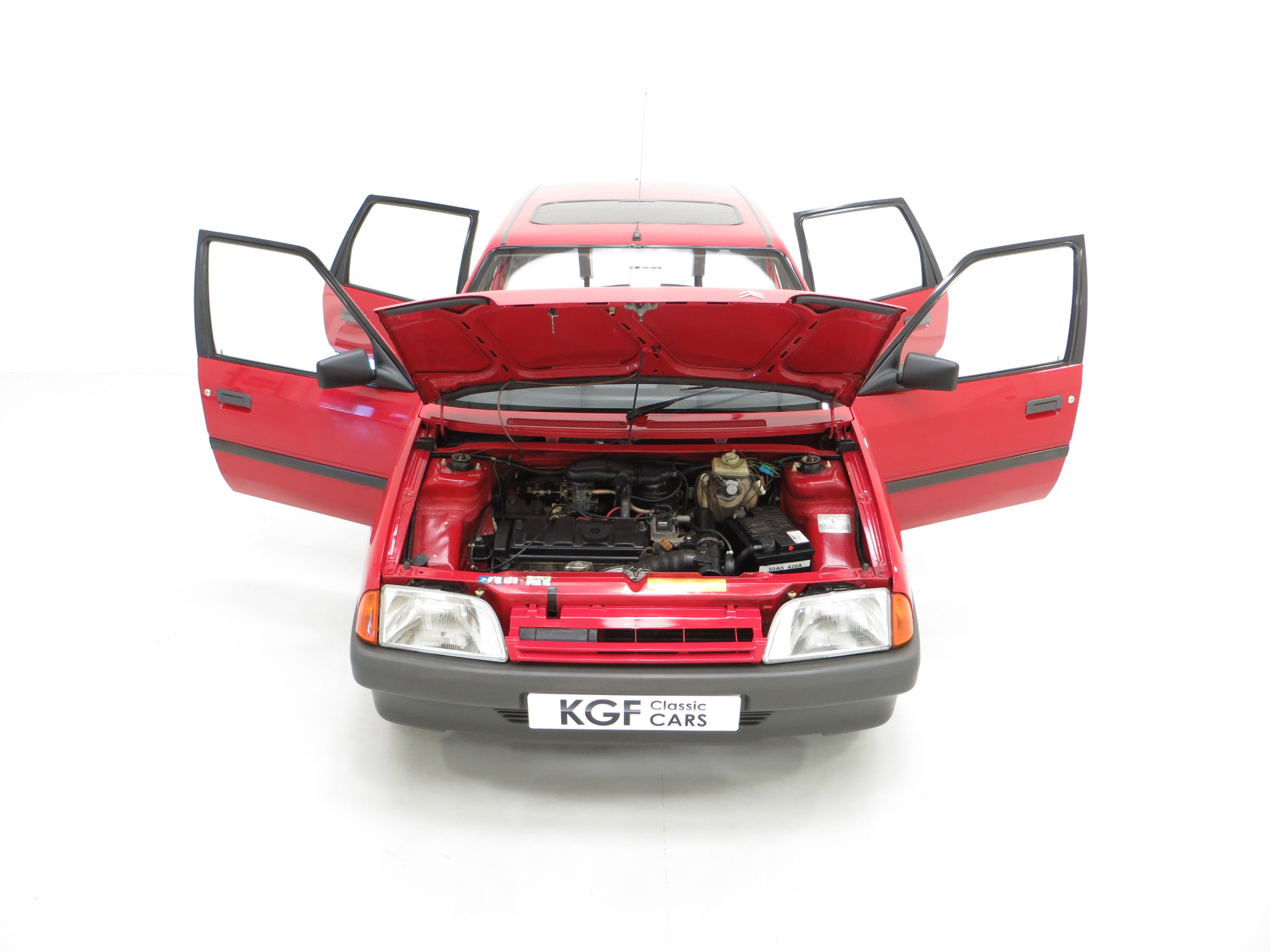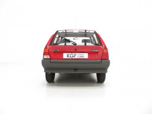 Once a common sight on UK roads, the humble Citroen AX has all but disappeared, particularly in this ultra-rare Phase 1 form. This remarkable AX 11RE has covered just 39,280 miles from new with one lady owner! Finished in original Venetian Red, (Code EJX), the paintwork boasts a wonderful deep shine and the super-lightweight panels are incredibly straight and ding free, very rare for a small French car! A few touched in marks do not detract from the overall impressive appearance. All trim sections are in excellent order and originality seekers will be pleased to see supplying dealer number plates and all glass sections original etched Citroen fit. A lovely slice of 1980’s gallic charm!