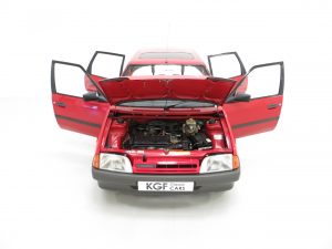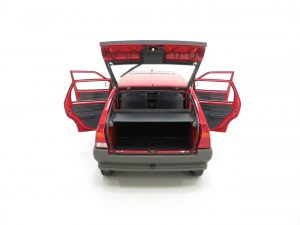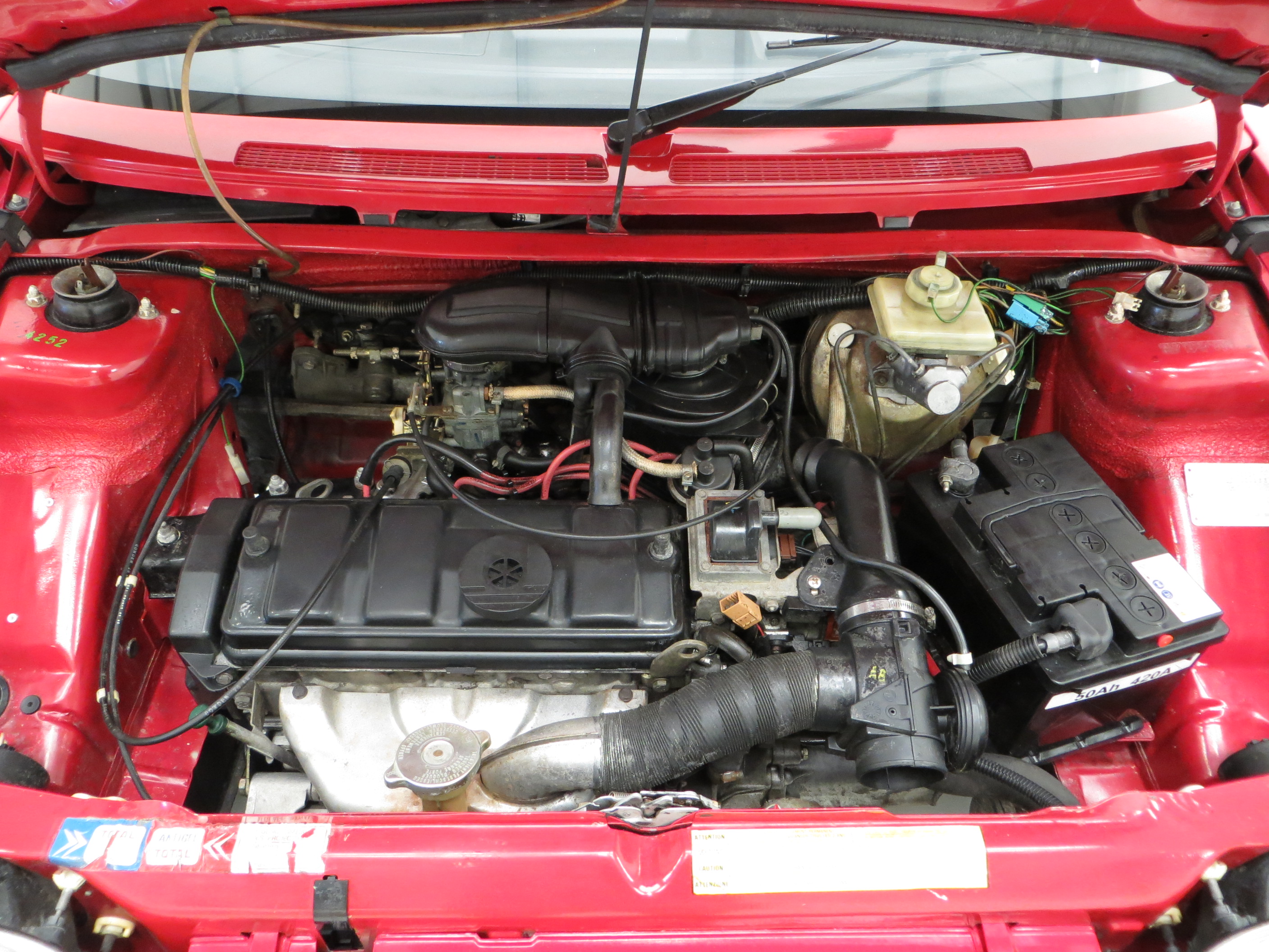 This early AX 11RE is fitted with the famous PSA TU series 1124cc engine with Magneti Marelli carburettor producing 59hp at 6200rpm. Weighing just 660kg, 15kg heavier than the 3-door variant, this featherweight is surprisingly lively with a top speed of 104mph and 0-60mph in 11.4 seconds. The very clean engine bay will delight originality seekers with all factory stickers, plates and panel stampings intact. Even the painted colour code is clearly visible. The four-speed manual transmission is light and precise.
