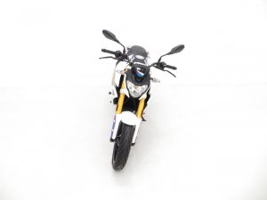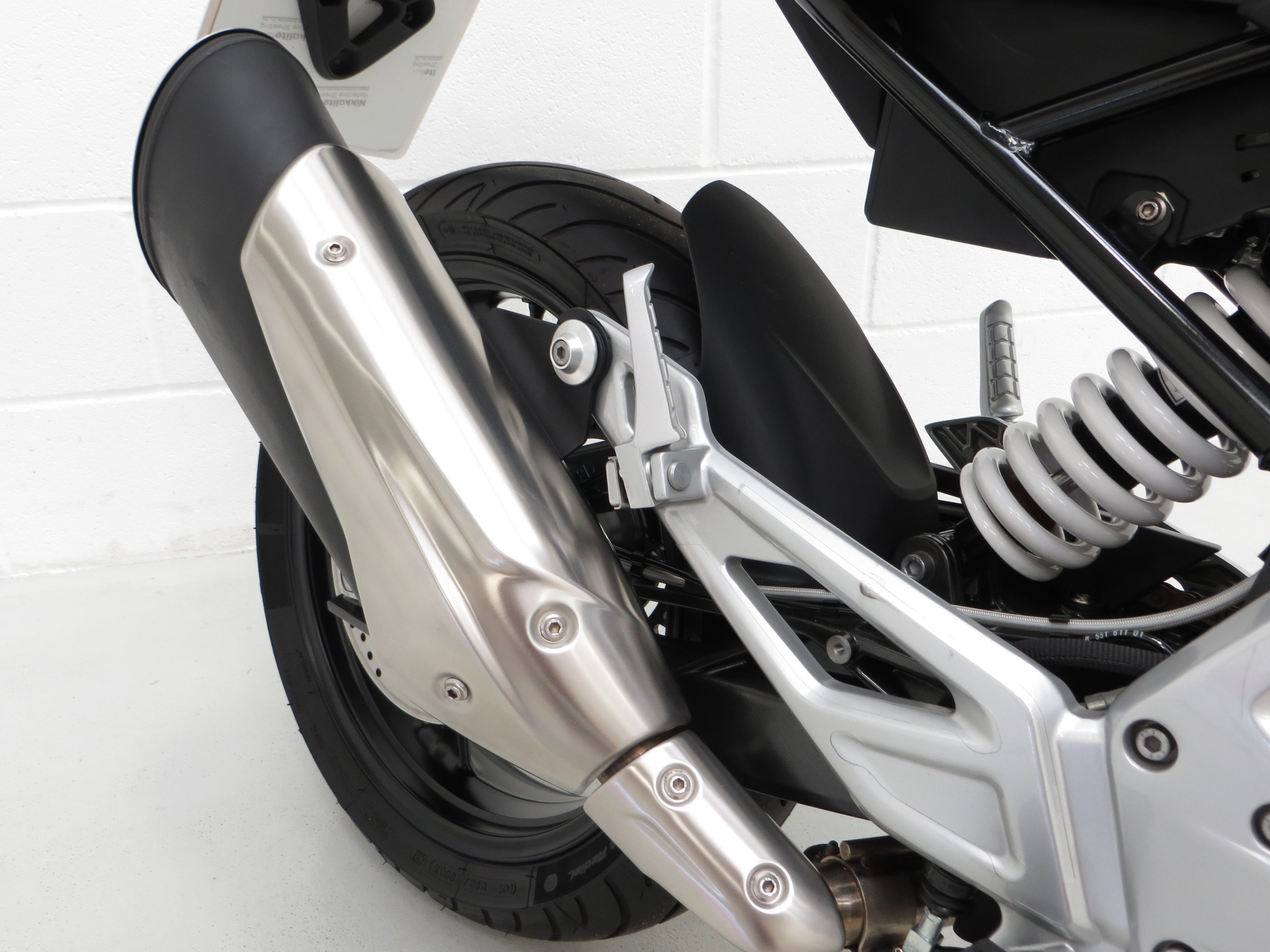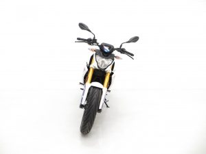 A water cooled 313cc single-cylinder DOHC engine produces 34hp and 28Nm maximum torque. Weighing 158.5kg, this ‘Naked’ urban bruiser achieves 0-60mph in 3.7 seconds and a top speed of around 90mph with lively and nimble performance. The engine and all ancillaries are factory standard and in immaculate condition. The 6-speed synchromesh gearbox features a wet multiple-disc clutch and progress through the range is rapid and precise. This is a very fun bike to ride.